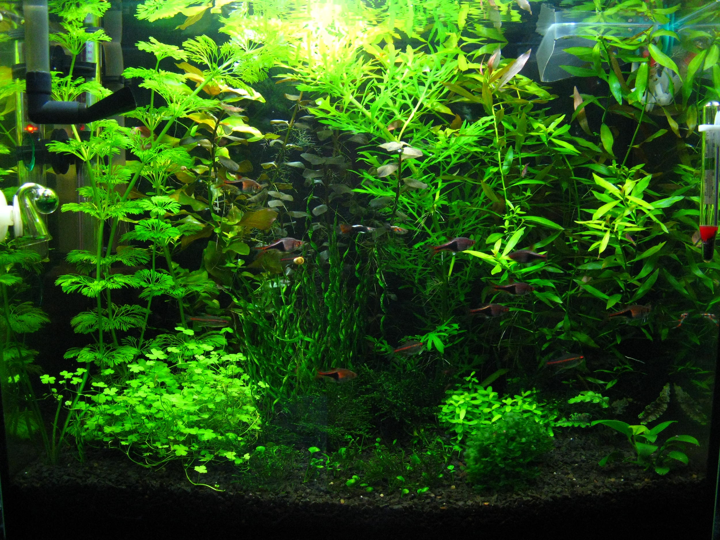Растения практически не обрезал, рыбам заросли больше нравятся, чем открытый верхний слой. И мне кажется, заросший он лучше выглядит.