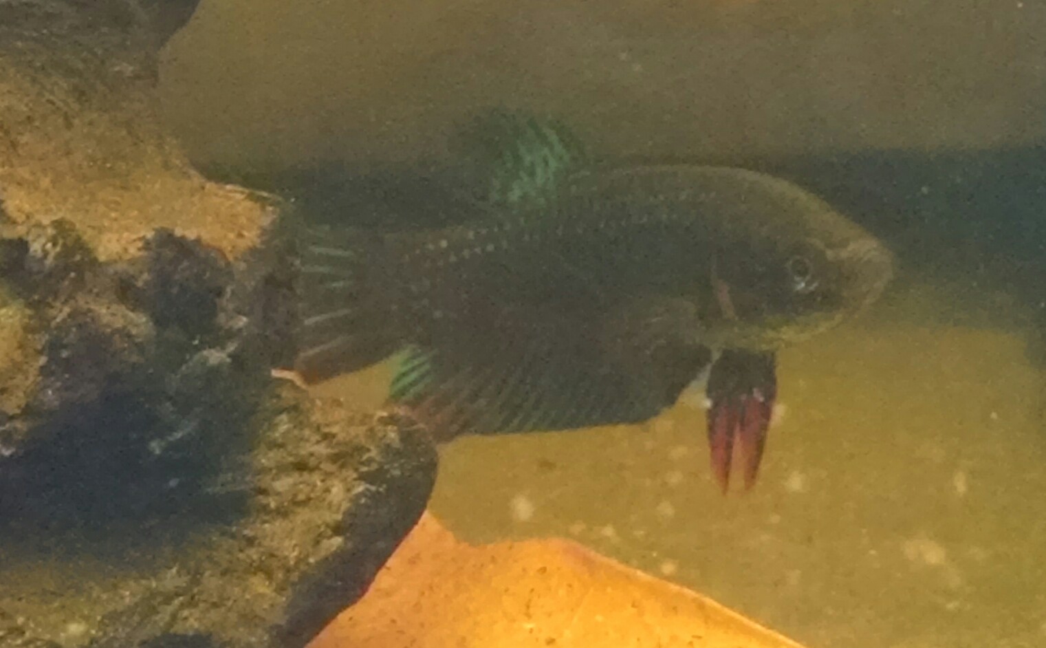 Очень черный, намного темнее Imbellis-а (иногда невозможно отличить от декораций). Активный и достаточно агрессивный. Бросается не только на отражение в грелке, но и на палочку для кормления...