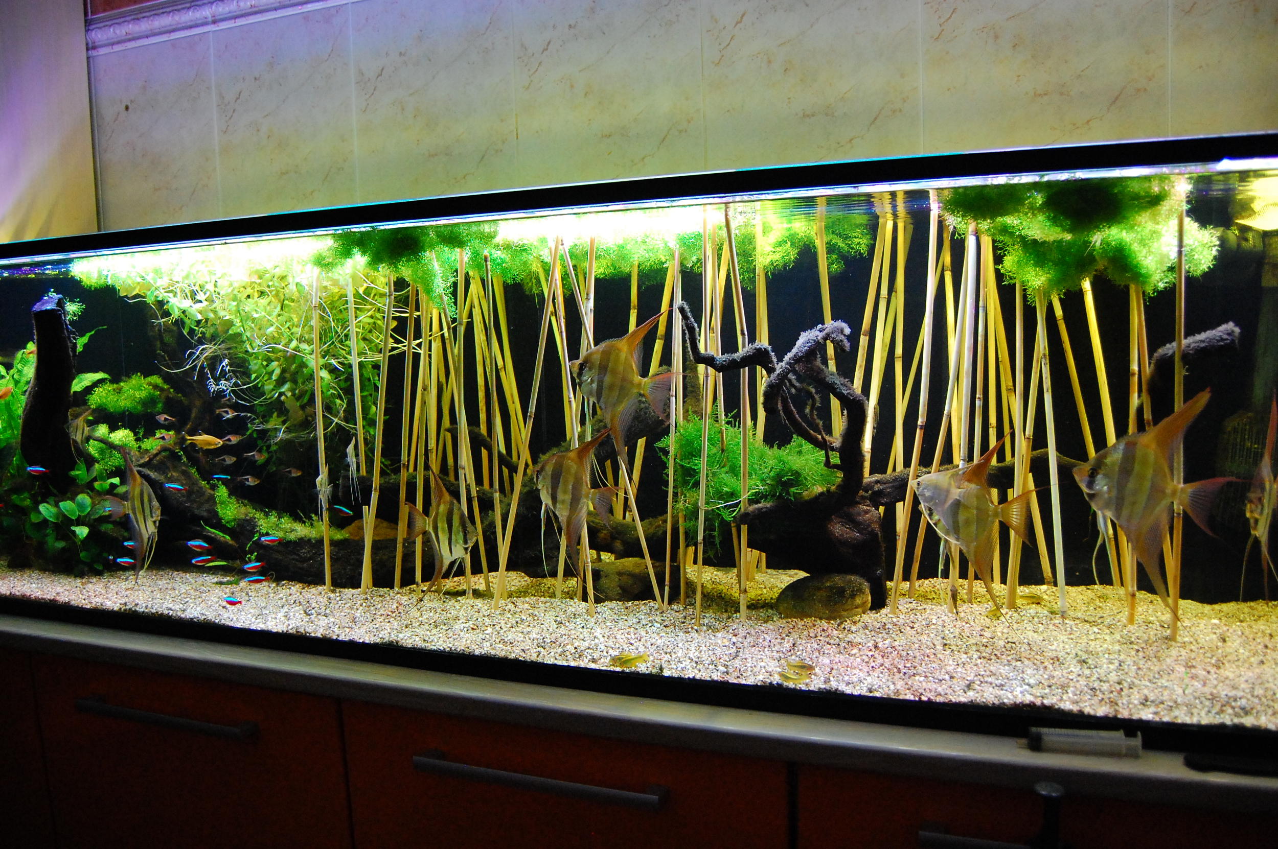 Вот думаю может "растянуть" тростник по всему аквариуму хаотически на переднем и заднем плане,или только на заднем?