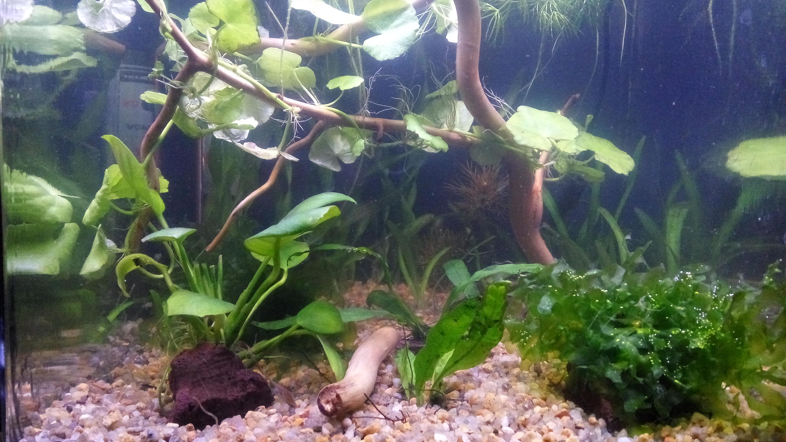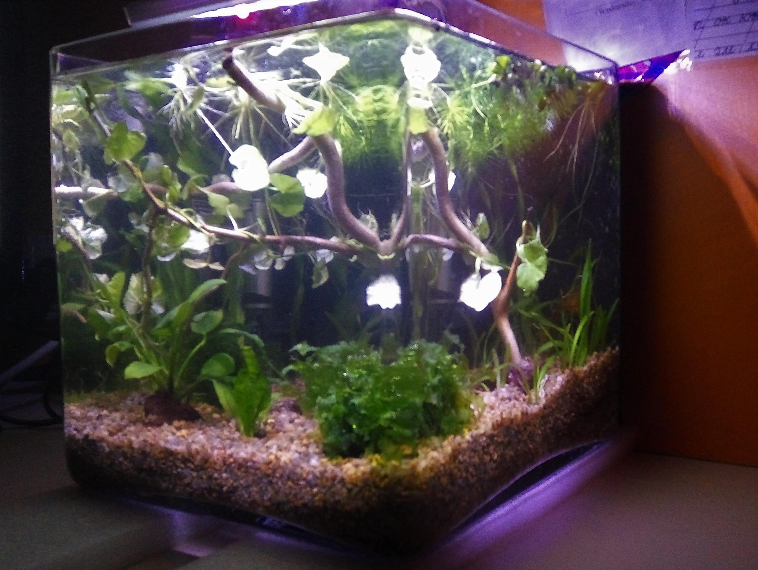 В акве установлен нагреватель, свет - переделка морского светильника с Алиэкспресс. Поменял часть диодов на более теплые и добавил красных. Фильтра нетути... Но... как то вот стремно без него... Привык я что фильтр должен быть... Поставил рядом Ресун микра- так картина, прям сказать , безрадостная... Спрятать его не куда...Он размером с аквариум... И еще эти трубки... Буду сейчас искать - смотреть чего то очень маленькое... Типа Dophin KF-150, или еще чего...А Ресун на продажу выставлю...
