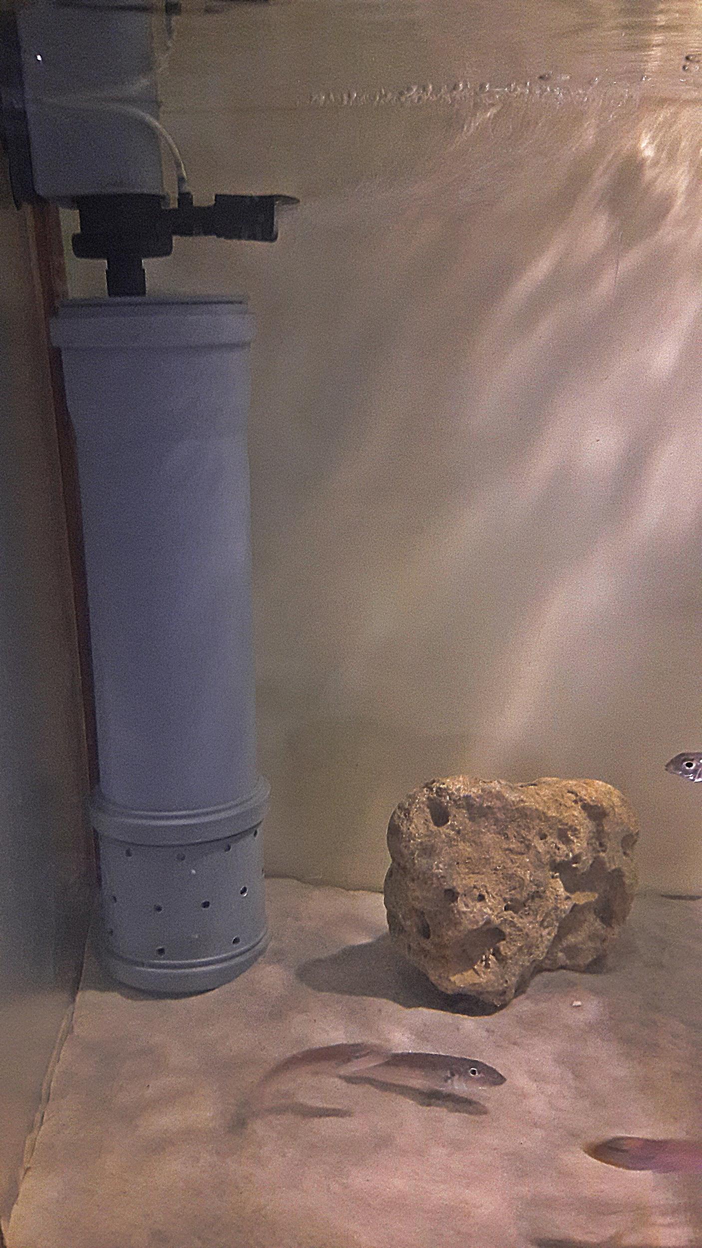 Вчера вечером кстати сделал в один из аквариумов в разводне внутренний фильтр из канализационной трубы 100мм, работает и довольно не плохо. Труба 100мм - 40см, муфта 100мм -1шт., две заглушки. Фильтр получился высокий, от самого дна и до верха.