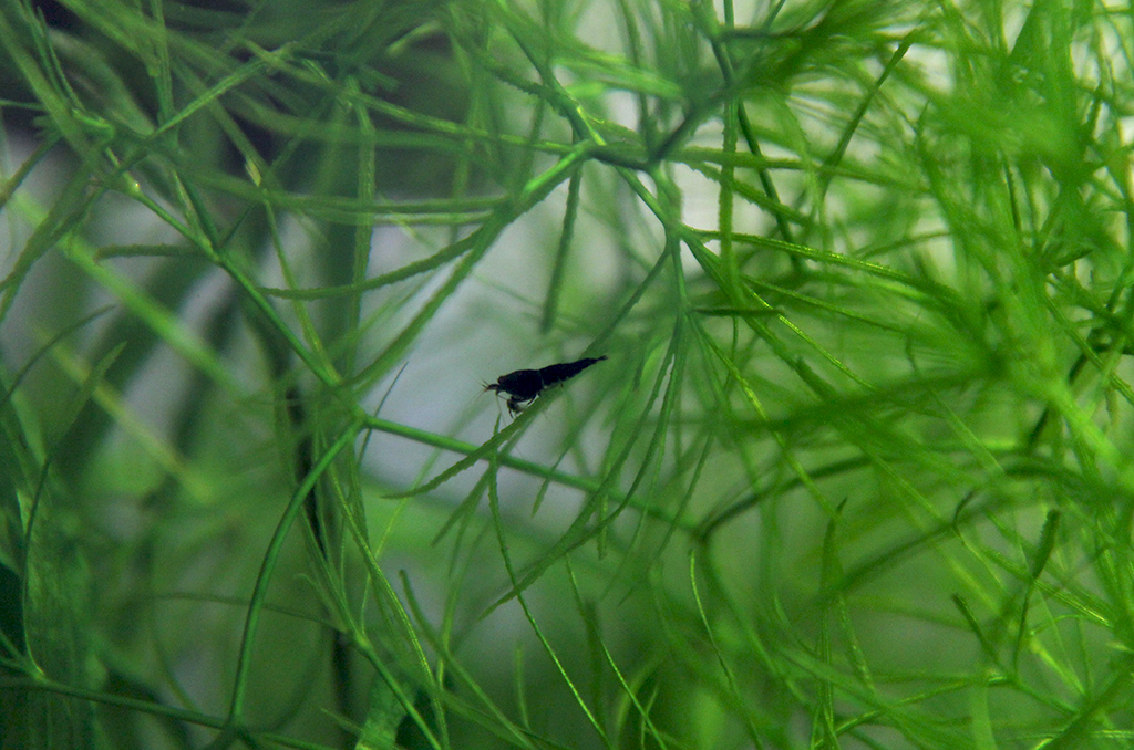 Тем более, что в квартире температура поднималась до 33 градусов. Я думал после этого там вообще ничего живого не останется. Хотя старые креветки не пережили это лето, видимо кто-то успел малька скинуть, по размеру видно, что было 2 выводка, одни чуть больше 1см., другие чуть меньше. Черные из тех, что поменьше, они 8-9мм.