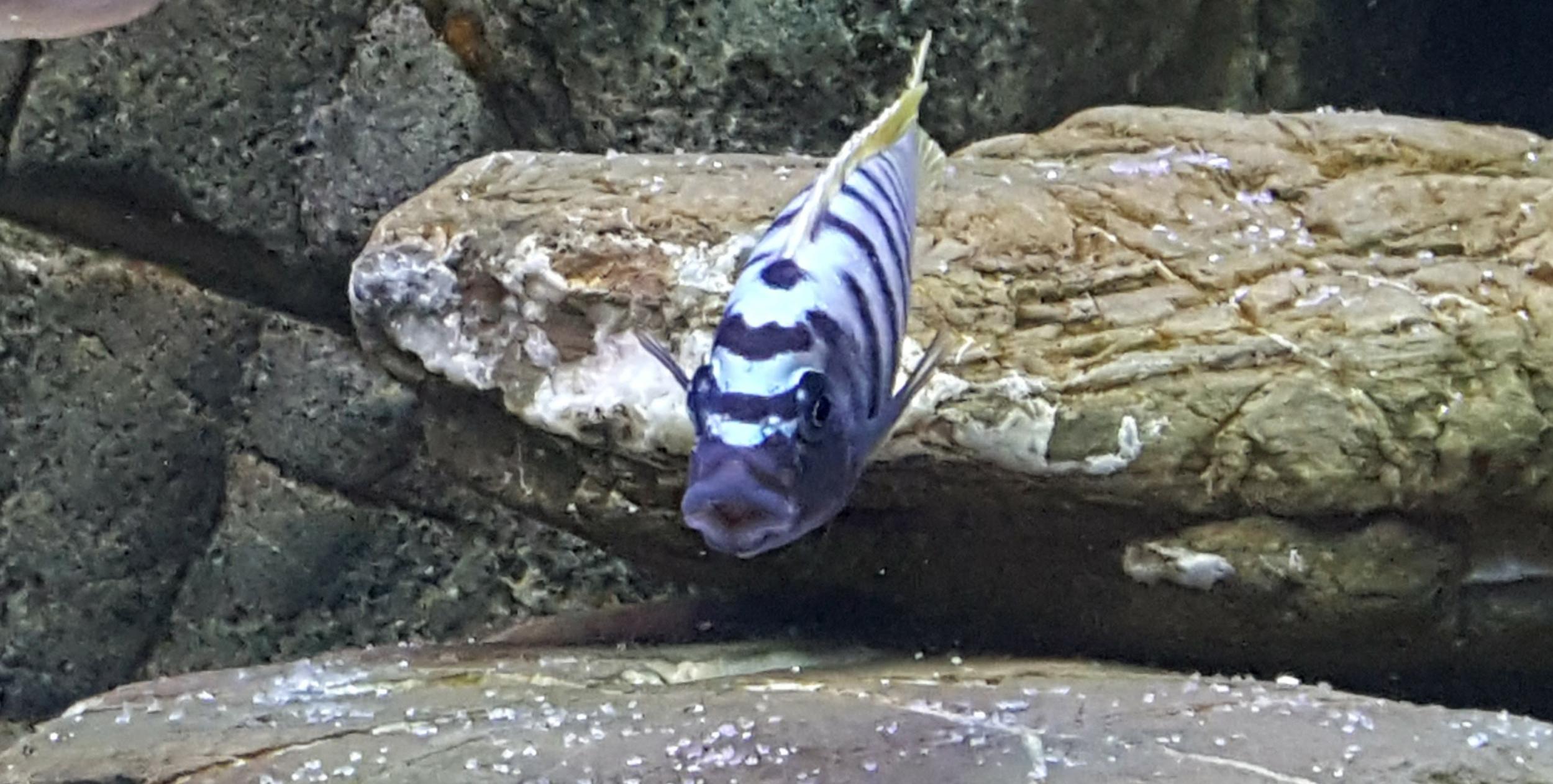 Есть в наличии два самца Cynotilapia afra 'Jalo Reef', оба окрашены, особо выяснений *доминантности* не наблюдал - каждый занимает свою часть аквариума. Накануне НГ у одного заметил опухшие губы. Плавает все время с открытым ртом. При этом активен, корм берет, свою территорию без фанатизма, но охраняет.