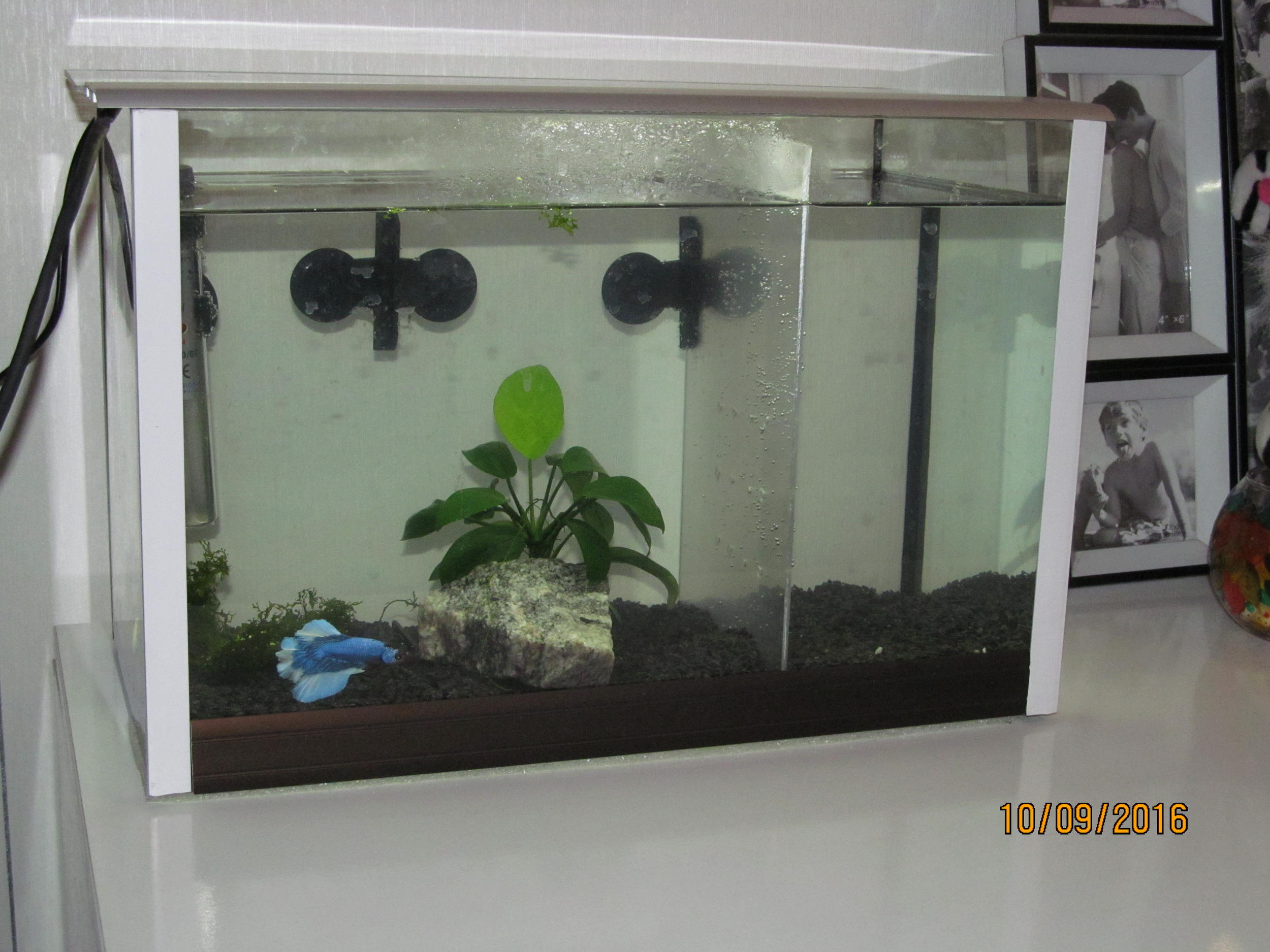 Перегородки из акрила, ребята знакомые сделали по моим размерам, ну а отверстия насверлил сам. Раньше стоял какой-то китайский фильтр (потом умер), сейчас стоит Aquael FAN Mini Plus.