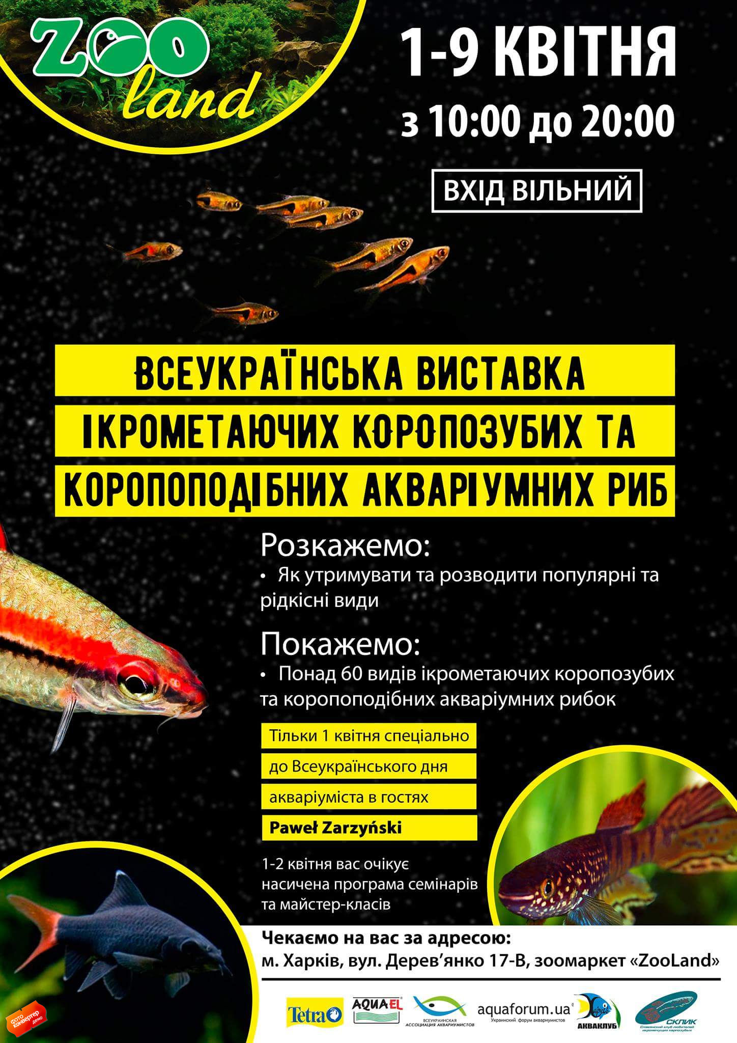 Аквастудия ZOOland,Всеукраинская Ассоциация аквариумистов, Украинский форум аквариумистов Aquaforum.ua,Харьковский клуб аквариумистов, ТМ AQUA EL, ТМ Tetra, ТМ Природа,клуб СКЛИК-Украина