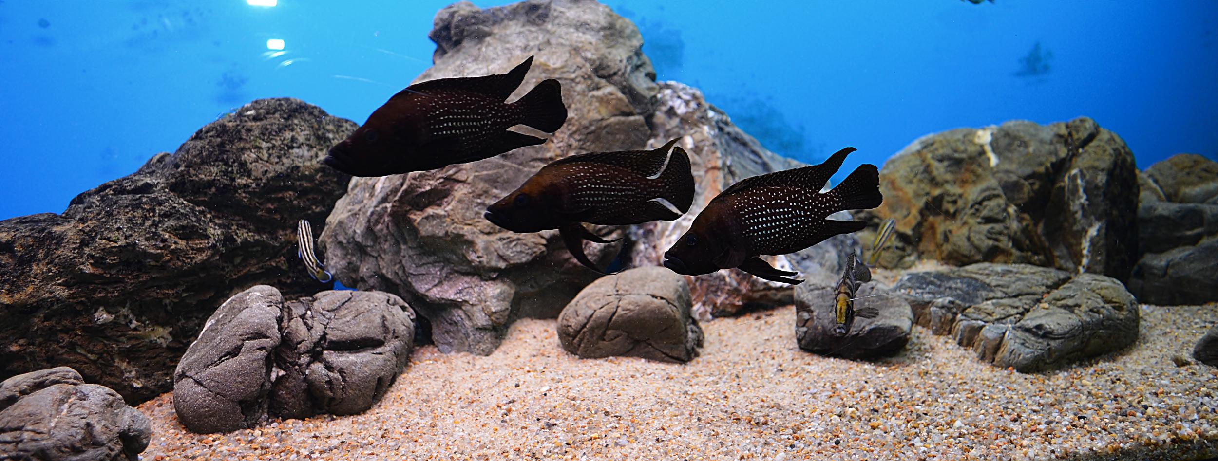 Пришлось покормить, т.к. самцы сильно скромные и когда подхожу к аквариуму, постоянно прячутся за камни. Рапаны уже подвинул ближе к месту локации самцов, в надежде что они отнерестят самок.