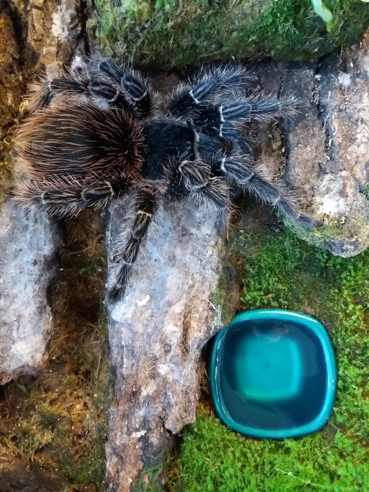 Повертел на столе ,посмотрел: "сойдет". Паука переселил. Через пару часов угостил крупной блаптикой. еще через пару дней установил поилку. банка потихоньку заплетается, может сниму на днях как это выглядит.