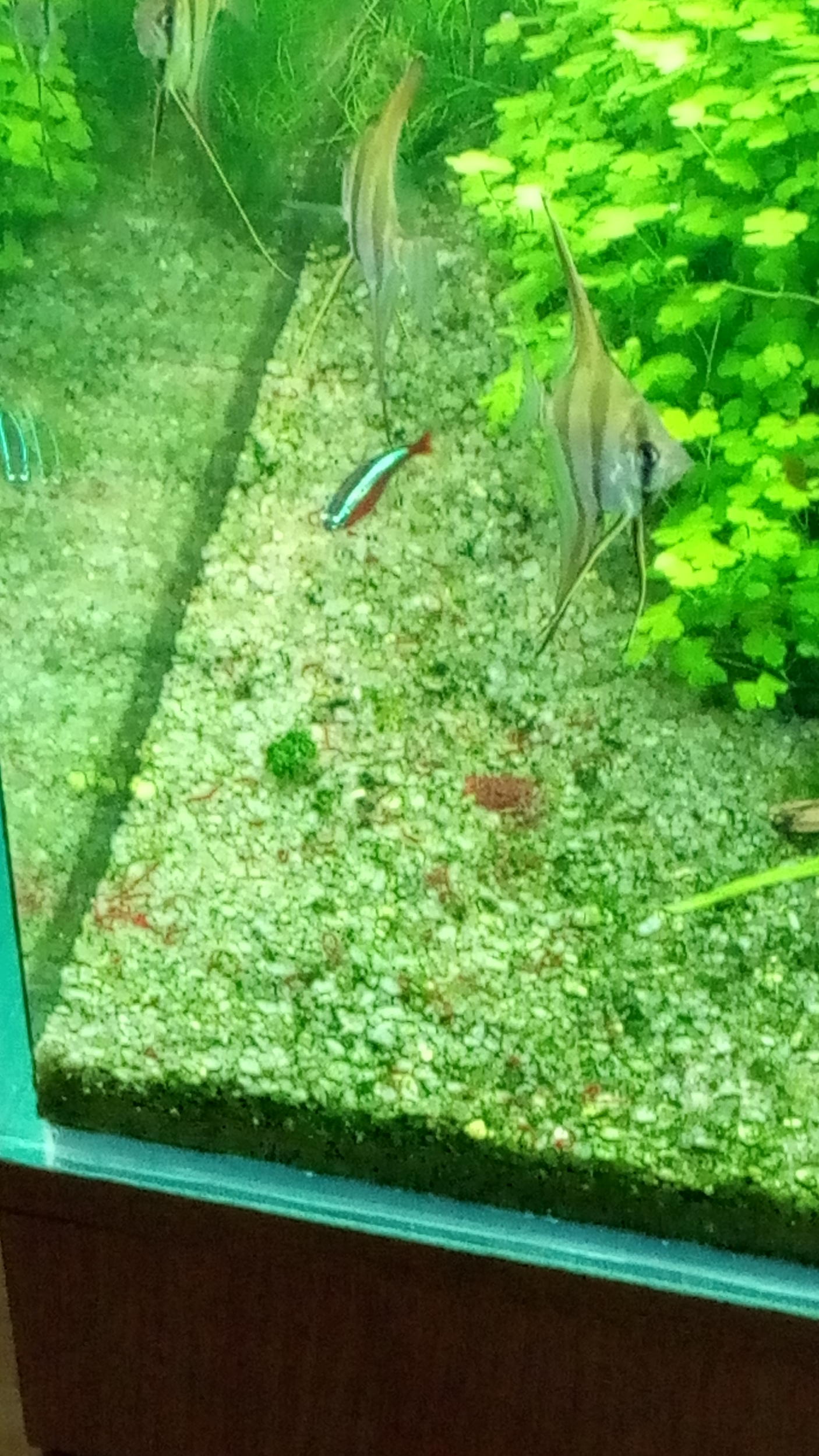 Совпало или нет, но на подачу корма отреагировали активно,правда поклевав немного-отплыли. Немного мотыля упало на грунт, там совместно с неонами они понемногу избавили меня от необходимости уборки мотыля