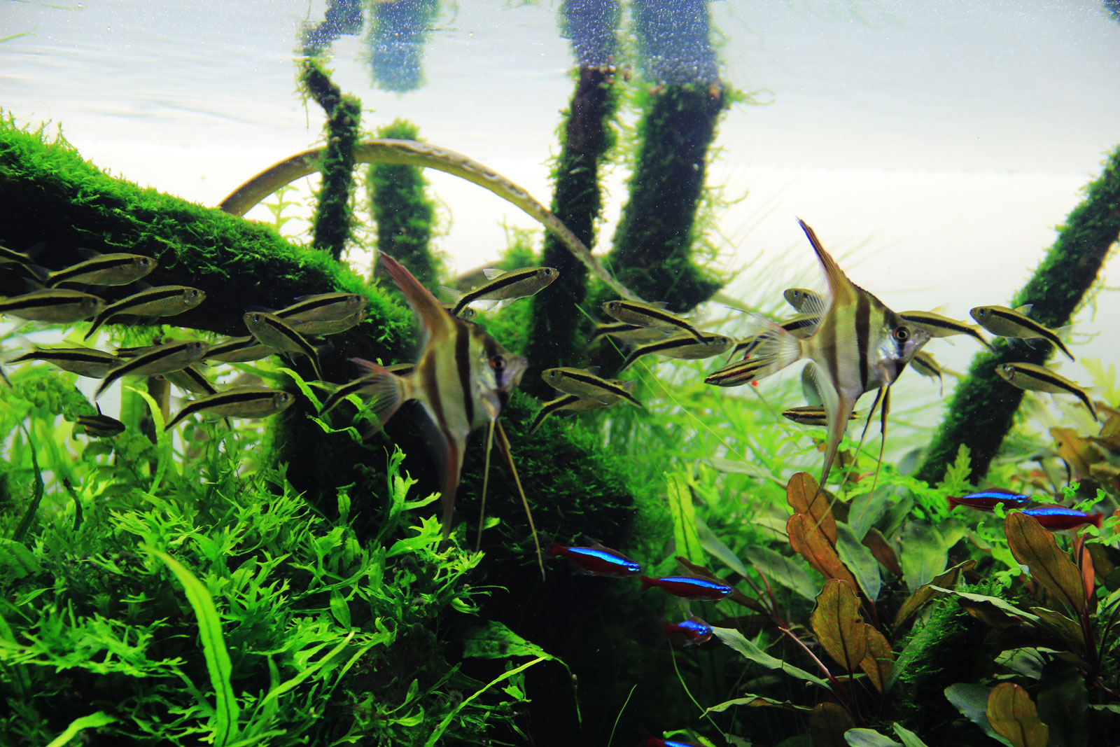 B1 Истинный (настоящий) биотоп-аквариум: ландшафт с рыбами и водными растениями из одного и того же водоёма.
