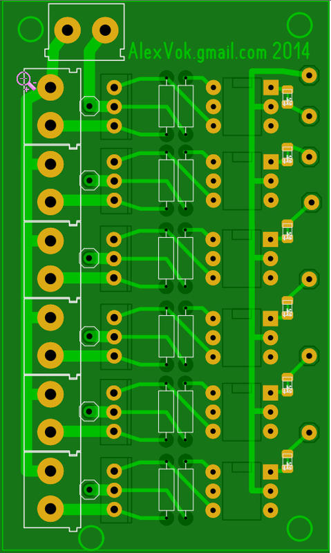На картинке силовая часть в виде готового релейного модуля (такие есть и на 8 каналов - цена около 8 баксов), я использовал свою плату силовой части - схема и печатка во вложении(плату изготавливал по ЛУТ технологии).