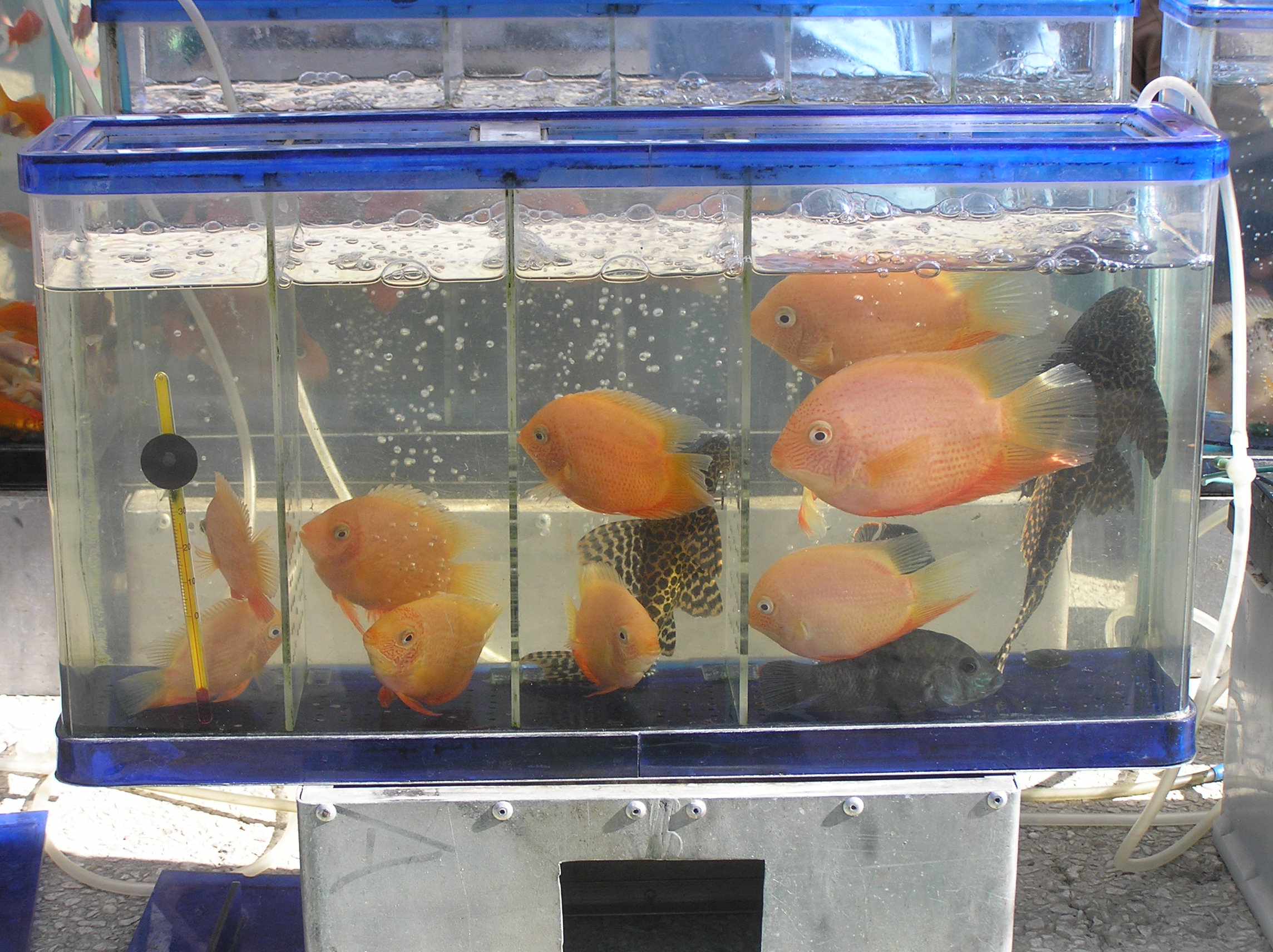 ...Сегодня,будучи на рынке, решил исправить положение и более качественно сфотать этих тигровых меченосцев,о которых упомянул ранее.К сожалению,их было не так много.Разобрали наши и оптовики.Но все же посмотрите и немного иного.