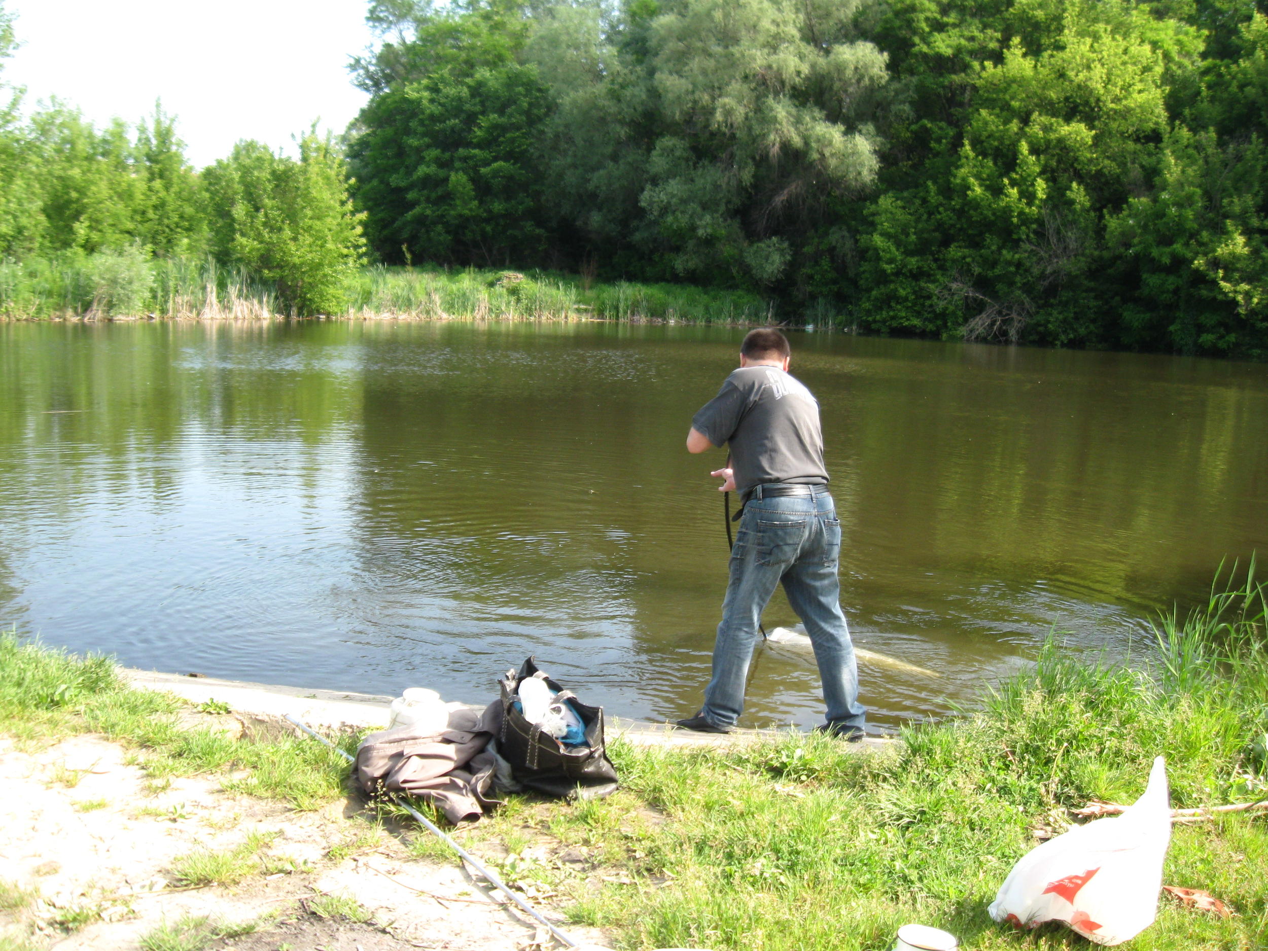 А мой не первого класса сачек лежит во время съемки возле белого бидона Романа.