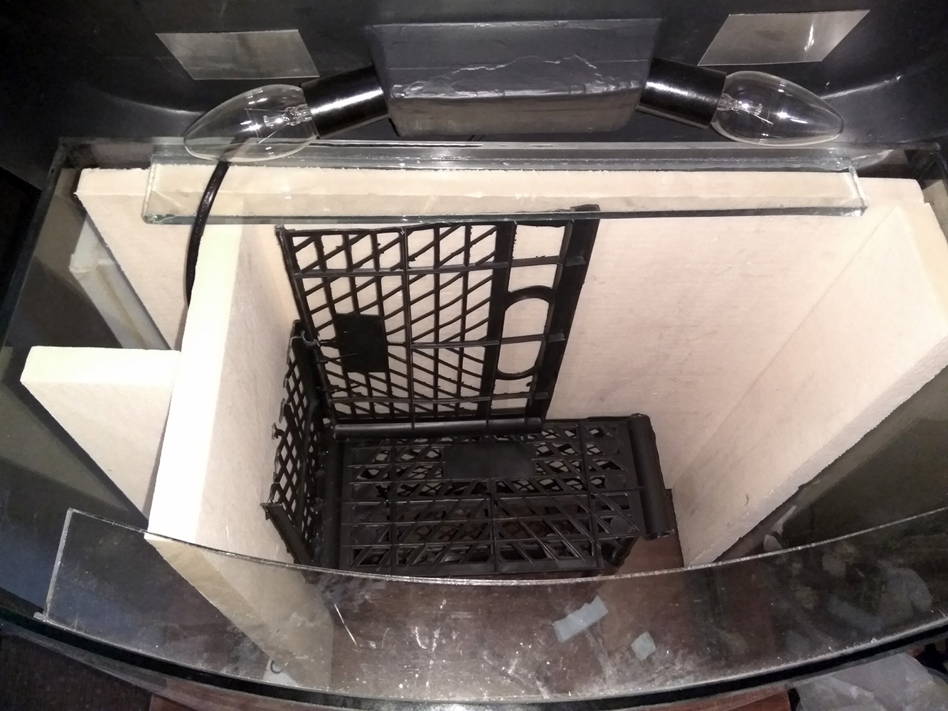 З пінополістеролу 20 мм зробив основний каркас - відсік для помпи та задню стінку. Деталі скріплював силіконом та бамбуковими шомпурами. Приміряв у акваріумі.