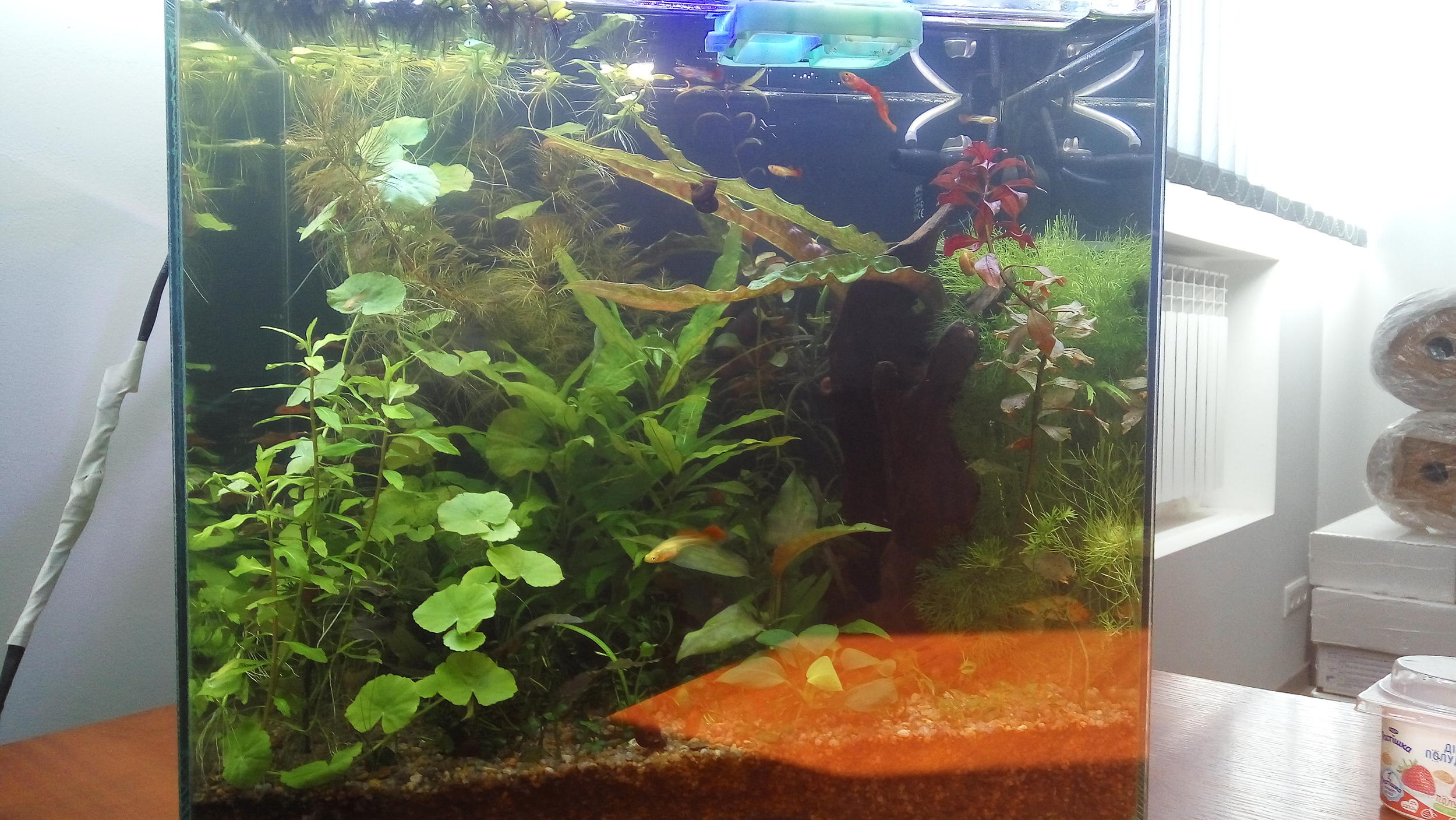 Что то подпропало настроение у складских работников... Соответственно аквасу достается меньше внимания. Ну разве что подмены делаются. Ну почти регулярно... Каюсь... Не делал почти три недели... Но... За это время вода из нормально - прозрачной стала кристальной. Данный мой аквас живет практически естественной жизнью.. Некоторое время давал УДО изредка, но затем перестал... Как то вот аквас сам собой перешел в разряд самообеспечения... Но... Пока все нормально! Тьфу-тьфу -тьфу... Из живности сейчас две взрослых особи гупей (самец и самка) и 5 подрастающих, судячи по внешнему виду самок... Молодняк... Эксперименты с Расборой Галактикой в прошлом... Теперь все по простому. С чего и начинали - Московская красная...