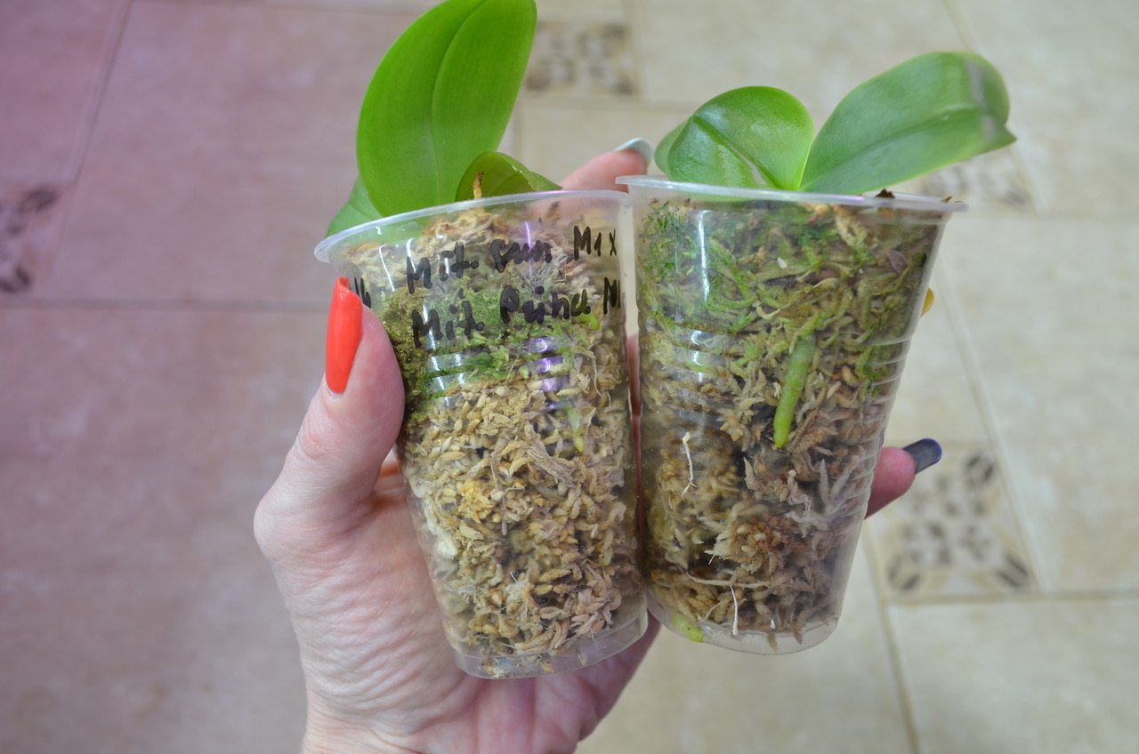 Покажу так же, как я их пересаживаю в больший горшок (500 мл одноразовые стаканы). Посадка та же: на дно на 1/3 чистая кора, дальше смесь резаного мха сфагнума и коры (мха где-то 40%).