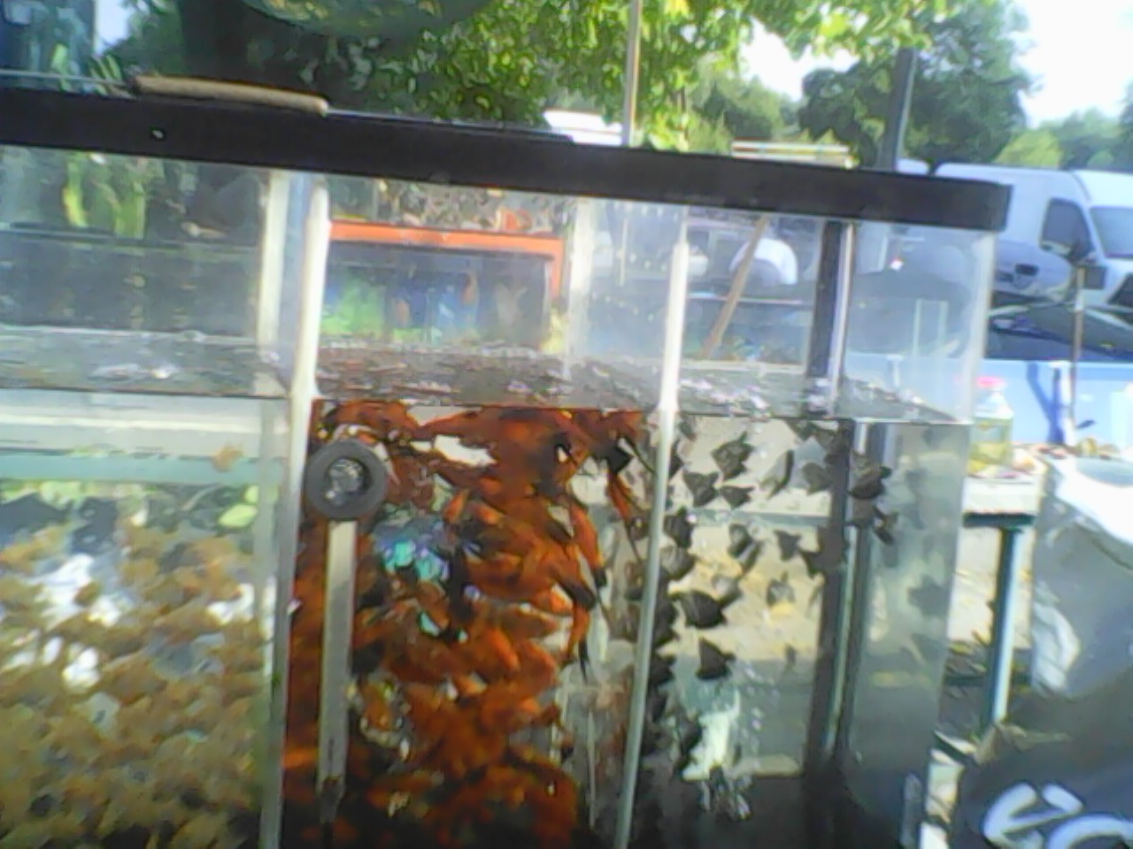 ...Всем привет!Сегодня побывал на харьковском птичьем рынке.Уверенно могу сказать,что было явное оживление против прошлой недели.Фотоаппарат не брал,т.к. был при деле.Но пару фото сделал телефоном.Простите за качество.Хотел показвать ослепительно ярких,красивых Тигровых меченосцев одного из разводчиков.Яркий,ало красный цвет.Рыбка времен 50-х годов,т.е. моего детства.Тигровые.У меня слабая камера в тлф,жаль,не передает всю красоту..Но воочию--просто красота.