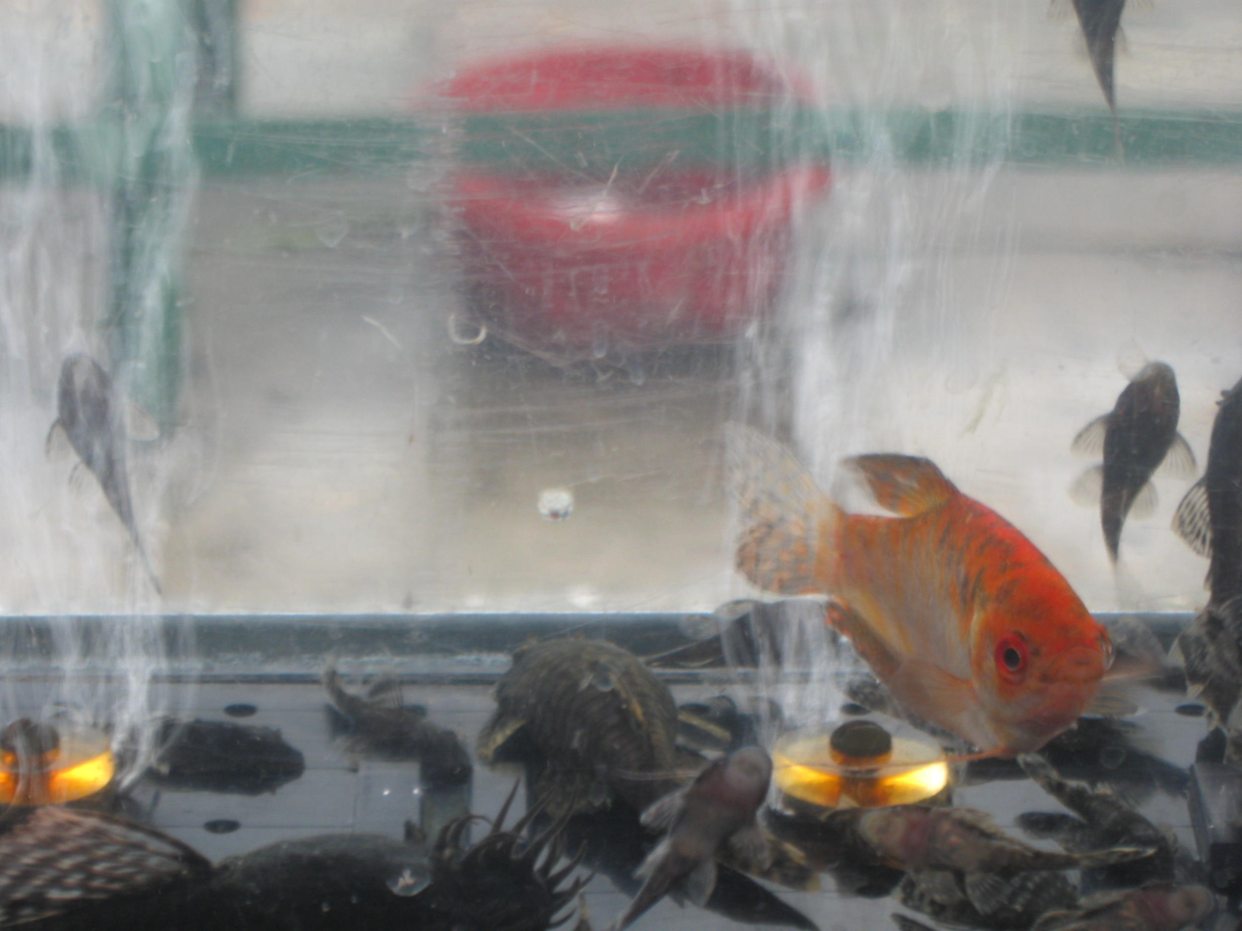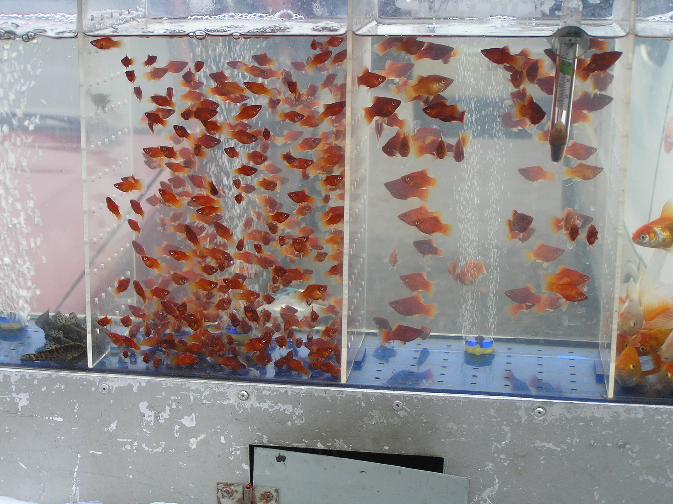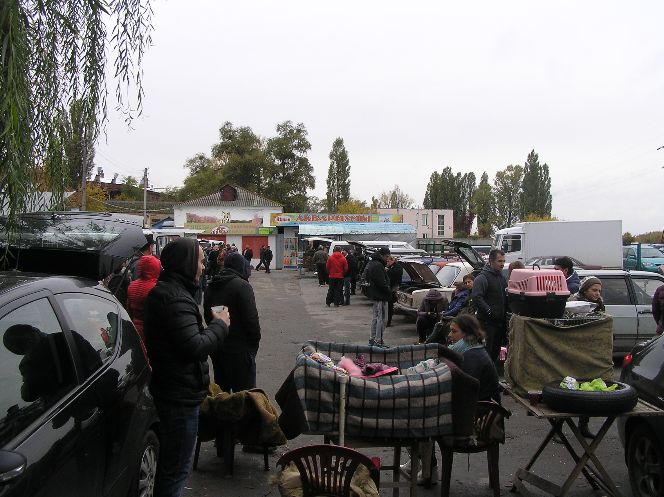 ...Как театр "начинается вешалки",так наш рынок наконец опять обзавелся всемирно известным ручьё перед входо.Так что идите в обход.Прибыл часам к 10,народ уже шел домой,но тем не менее все еще было на месте.Хотя продавцов и немного.Но рыба-задешево.Сегодня было прохладно для выступающих,7грд.Для рыбок в ширмах,как всегда,было комфортно,их подогревали. Если где может повторился по содержанию фото,то извините,это для лучшего рассмотрения предмета.Много было собачек в начале рынка.Практически все собачки приехали на своих автомобилях.А рыбки-нет,не все.В общем,смотрим.Было пасмурно,темновато и слегка накрапывал дождик