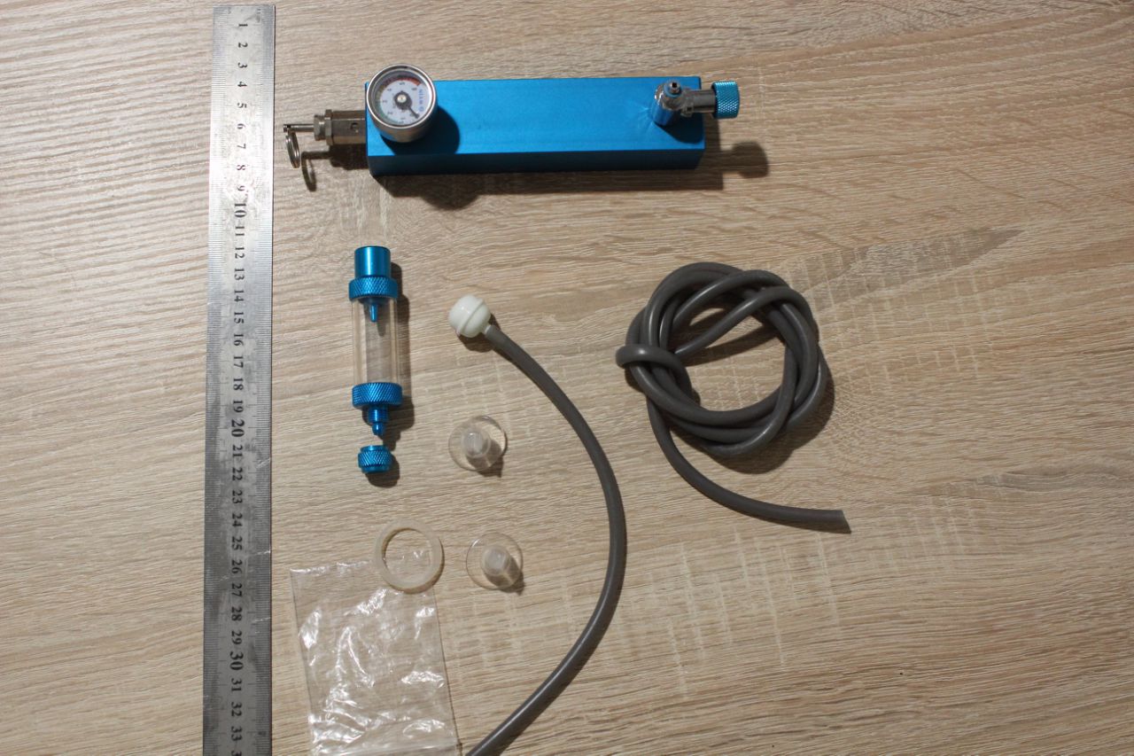 Как на фотографиях, т.е. то, что идет от производителя + в подарок набор на 4 емкости обратных клапанов, тройников, держателей для трубок и кусочек трубочки.