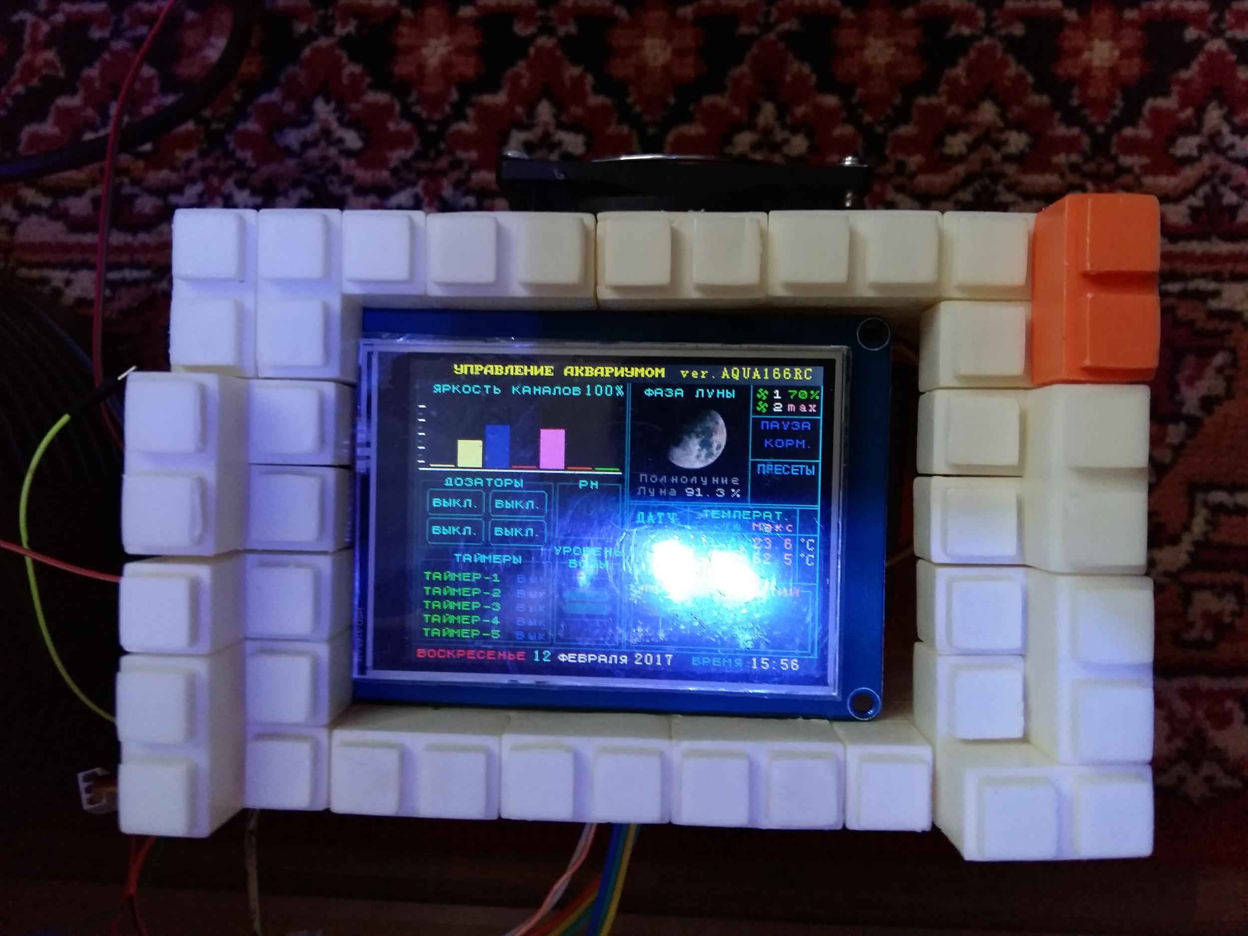 Контроллер помещен во временный корпус из конструктора, что бы меньше проводов торчало и не мешало домашним.