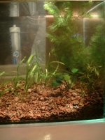 изменения небольшие,но есть.чтоб как-то оживить пейзаж приобрел три гуппи и хочу еще запустить маленького анцика.с момента запуска стекла не чистелись,один раз в начале был залит Флоростим,тапить пока не начали и времено поставлен терморегулятор с 100 л(прохладно на окне,а подоконник бетонный).вчера обнаружил криветку с икрой,вот теперь думаю,отсаживать ее,или соседи потомство не обидят(имею ввиду гуппи).