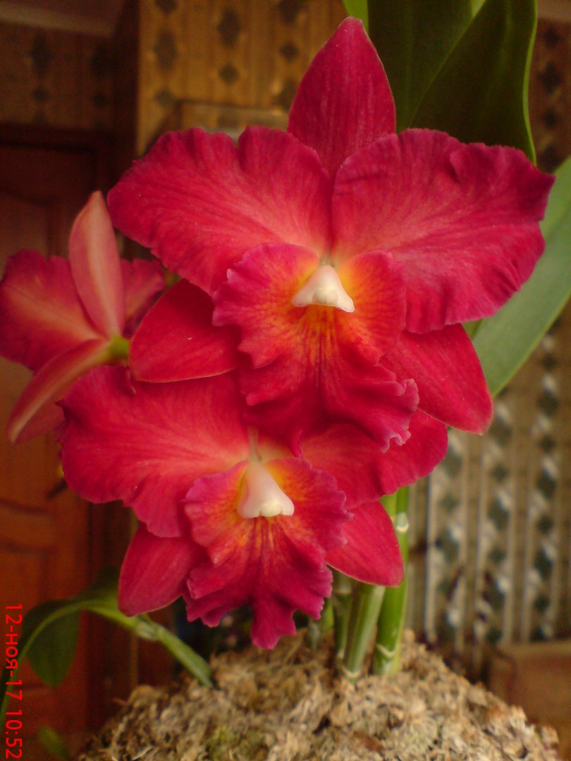 ну и последнее... на счет сморщиваться.. у меня написано что сморщивание старых бульб каттлей это норма. молодая не должна сморщиваться сразу а листья никогда не должны смотрищиваться. а теперь цветение. обратите на даты цветения красной моей каттлеи. предыдущее цветение ноябрь 2017 года следующее февраль -март 23018 года. и это северо-восточное окно без будь какой подсветки. даты по прежнему на фото