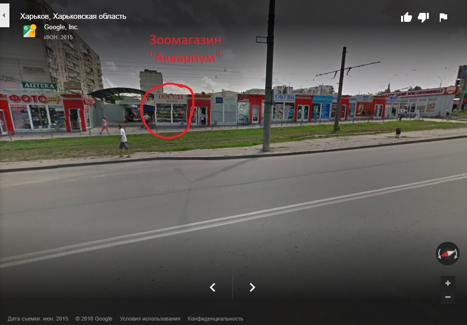 Пару недель назад заметил зоомагазин на перекрёстке проспектов Юбилейный и Тракторостроительный. Это наискосок от ТРЦ Украина. На фото, найденное через гугл карту, магазин посуда, его там нет, сейчас там зоомагазин "Аквариум".