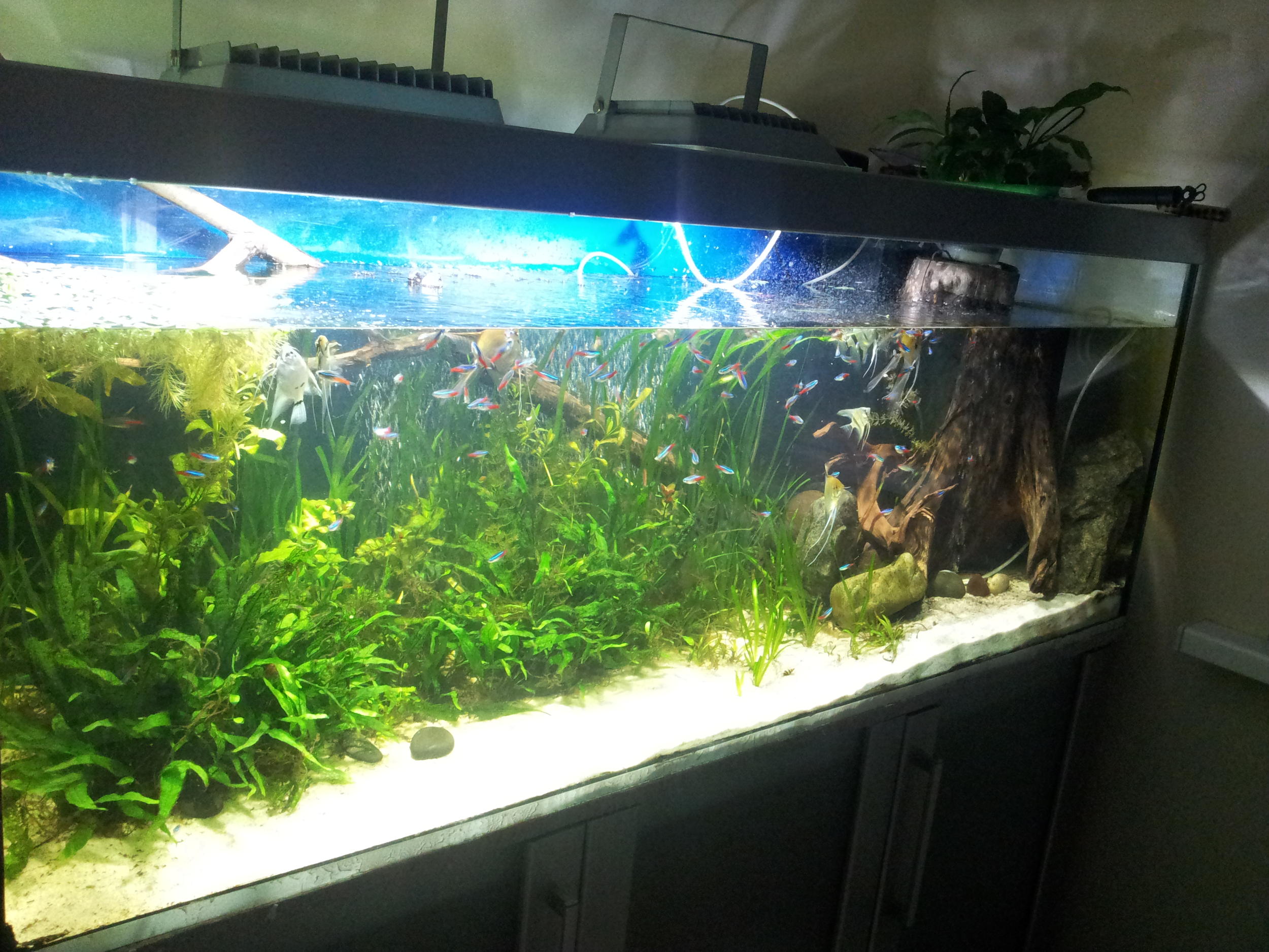 Имеется аквариум на тонну почти, 85 см высота, там стоит 2 лампы т5 или т8 и естественно этого для освещения мало.