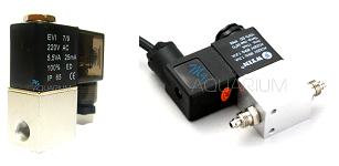 В аквариумных системах подачи СО2 используются нормально закрытые электромагнитные клапана. В случае аварийного отключения электричества – электромагнитный клапан отключится и перекроет подачу углекислого газа в аквариум. Основная масса электромагнитных клапанов работают от сети 220В, но встречаются энтузиасты, которые используют электромагнитные клапана на 12В, объясняя свой выбор меньшим нагревом электромагнитного клапана. В этом случае можно рекомендовать только одно – используйте специальные электромагнитные клапана для аквариумных систем, они меньше греются даже при подключении к 220В.
