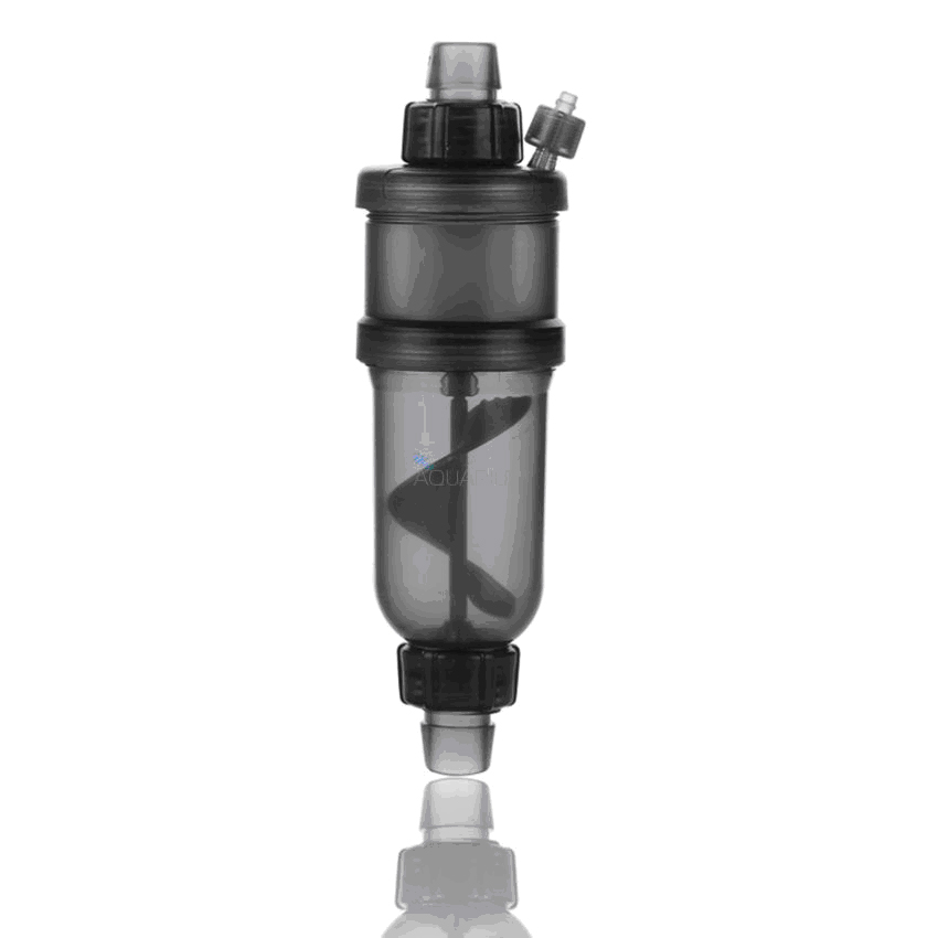 У такого устройства есть вход воды и выход. А также вход для подачи углекислого газа. Внутри расположены лопасти, которые начинают вращаться от проходящего сквозь них потока воды. Лопастей может быть несколько и разной формы, в зависимости от модели и производителя, но суть работы устройства одинакова. Попадая внутрь миксера пузырек СО2 разбивается лопастями на много более мелких пузырьков, которые в свою очередь подхватываются бурлящим потоком воды. Благодаря этому миксеры имеют довольно неплохой коэффициент полезного действия. Чтобы увеличить КПД есть модели, в которых внутрь добавляются специальные наполнители (био-шары, как во внешних фильтрах) Это дает дополнительные преграды для движения пузырьков СО2, на дольше задерживает их в воде и соответственно способствует лучшему растворению. Но есть и минус – такие наполнители дополнительно гасят поток воды из фильтра.