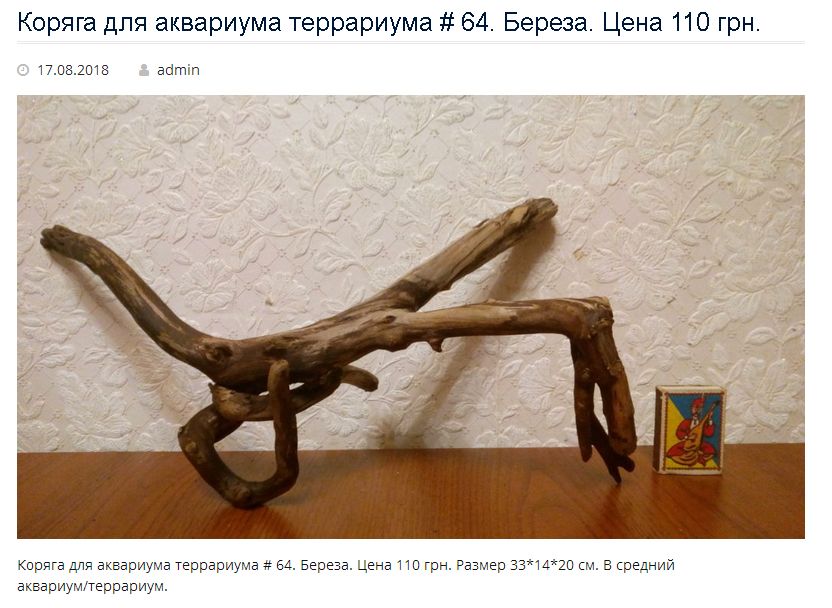 ВНИМАНИЕ! Остерегайтесь недобросовестных продавцов-аматоров. Коряга при продаже должна быть ИСКЛЮЧИТЕЛЬНО: сухой, обработана механическим способом (вручную), вырезана гниль, без коры, без грязи, прописано из какого дерева. Как правило продаются коряги, которые просто обработали щеткой и сразу проварили несколько минут, или обдатые кипятком, или просто промыли струей воды. Будьте внимательными при выборе коряги! ОСТЕРЕГАЙТЕСЬ ЧЕРНЫХ, МОКРЫХ, ГРЯЗНЫХ И НЕОБРАБОТАННЫХ ГНИЛЫХ ТОПЛЯКОВ!!! Берегите свои нервы и здоровье Ваших подопечных.