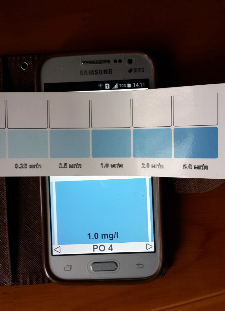 ЗЫ. Если у вас есть возможность то приготовьте тестовый раствор именно 5 мг\л и оцените сам цвет как на шкале так и на смартфоне. Только тогда вы все поймете. Думаю что вы немного неверно считываете показатель 5 мг\л со шкалы.