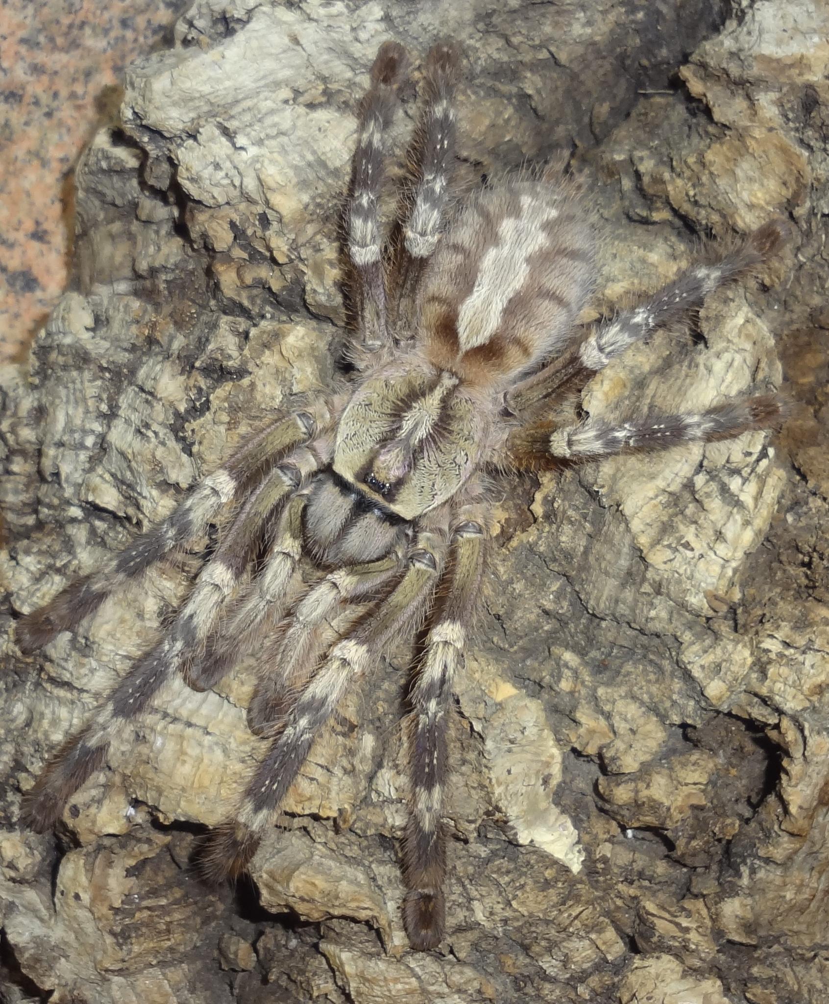 Молодая самочка Poecilotheria tigrinawesseli со вспышкой и без