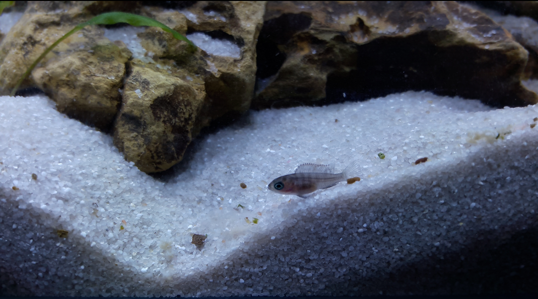 Наконец разродились мои самки кобу и галлирея, маля уже активно лопает циклопа. И вот сегодня как раз решила устроить большую уборку в аквариуме ну и как-то совершенно случайно и очень легко словились мальки, да еще и 3, а не 2 как я думала. Решила рискнуть и пересадить маля к петуху: Людовик парень достаточно спокойный, любит втюхнуться между стеклом и фильтром и кайфовать от вибрации. Так может продолжаться часами. Тем более недавно Людовику выстроила из драконьего камня целый особняк с криптокориной и еще какой-то растючкой. Так что кто не рискует, тот не пьет шампанского,а ведь все-таки скоро новый год и я не хочу остаться без своего бокальчика шипучки. В любом случае, как бы не советовали не держать вместе петухов с цихлидами,на семейном совете,состоящим из меня, моего маленького сына, двух котов и жирной собаки, большинство голосов поддержало попытку сохранить маля, пусть даже и по соседству с Людовиком-петухом. Маля очень быстро адаптировалось, Людовик с интересом наблюдает за внезапно образовавшимися яслями в его особнячке,все счастливы,особенно я -мать решила в дочки-матери поиграть и вырастить малышей ( прям живое тамагочи ей богу  )