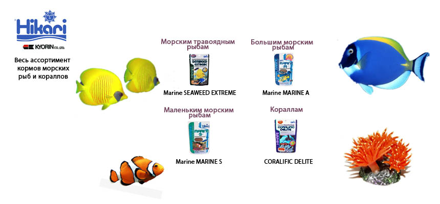 Выбор корма Hikari в зависимости от семейства рыб