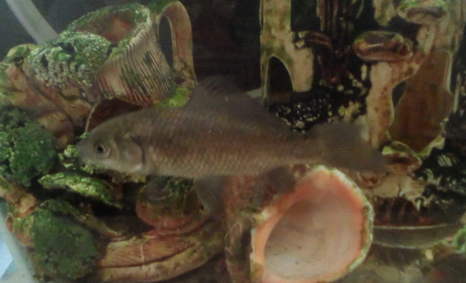 Карась неизвестного происхождения, достался в нагрузку к двадцатилитровой акве. Живёт без аэрации, длина с хвостом 7-8 см.