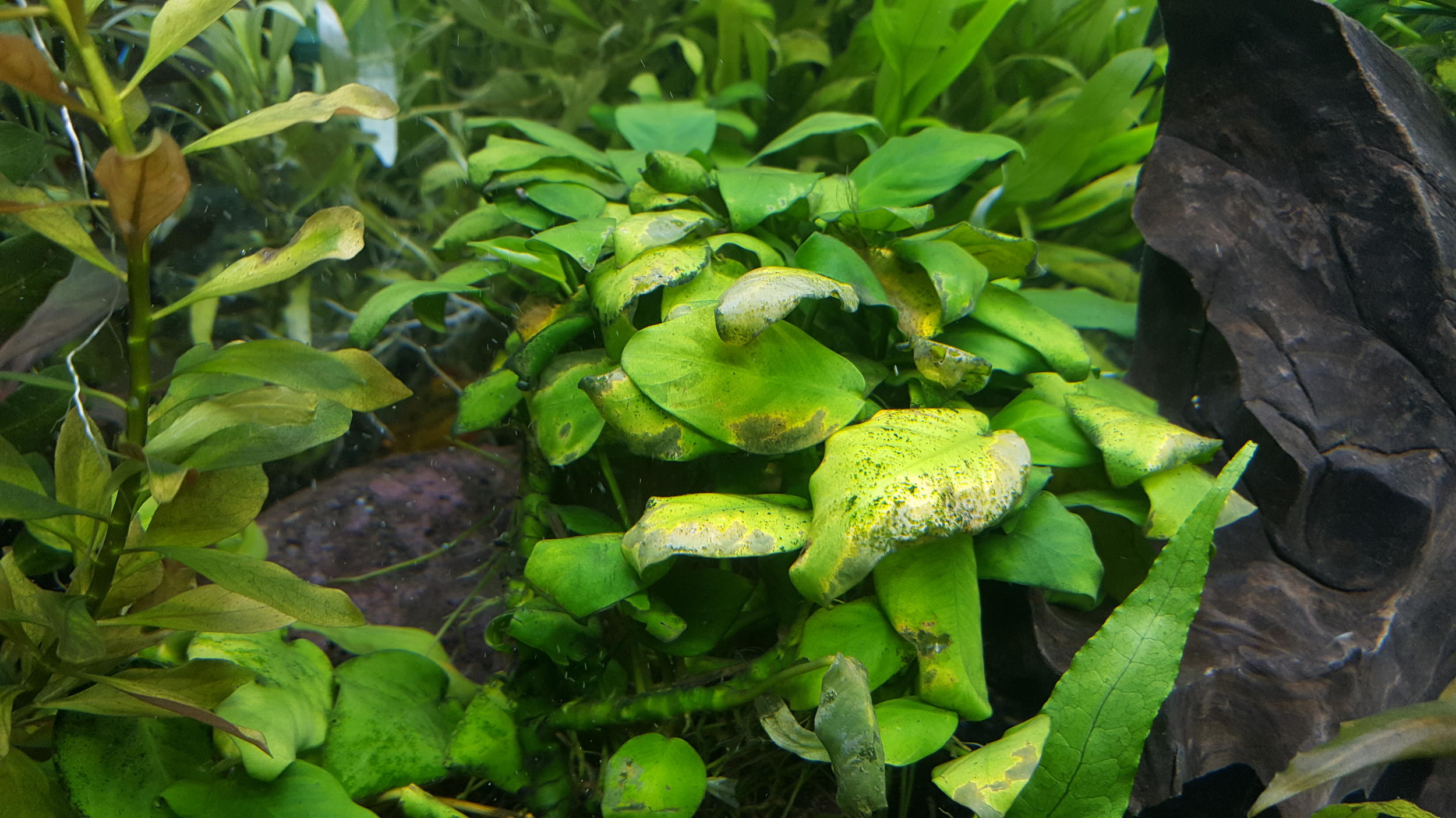 Вода с под крана отстоялась 8дней.с старого аквариума были перенесены растения ,рыбы ,коряги два камня(лава)и внешний фильтр.Растения гигрофили многосимяная,анубиус барта,людвигия рубин,крептокорина волнистая.Рыбы 10 шт красноголовых тетр,5красных неонов,3чьорных неона,3карденала,3расборы кленовидной,3 барбуса,2тернеции,3мечиносца,1молинезия,1анцытрус( 6см)прошло 4 дня с посадки растения очень пожелтели поблиднели идьот отмирания листьев.помогите советом как выйти из ситуацыи?
