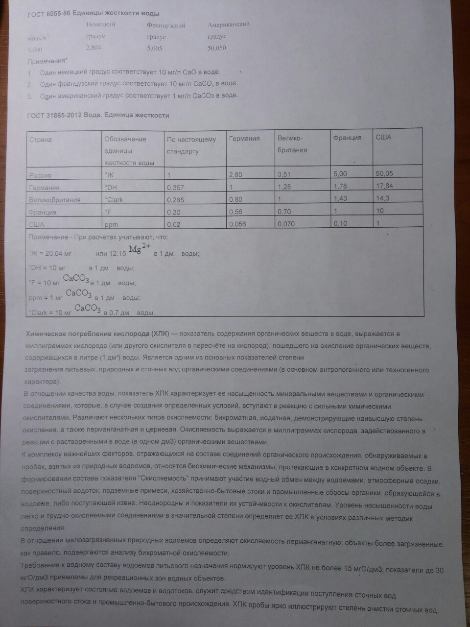 Параметры воды в 450 литрах воды.