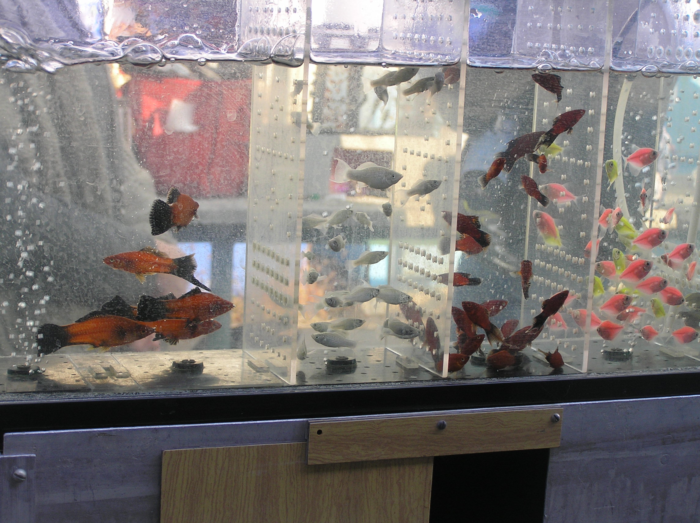 ...Но мой взгляд направляется дальше и в глубь рынка.И там вижу,что ,как и раньше стоят оквариумы,ширмы,а там тьма тьмущая рыбок.Пусть не так,как в былые годы,но все же нормально на первый взгляд.Делаю по рядам несколько проходов с виражами для поворотов.Как говорится,"иных уж нет,а кто далече".В то же время вижу,что кое- кто даже расширился,было по одной-две ширмы,а сейчс и поболее.
