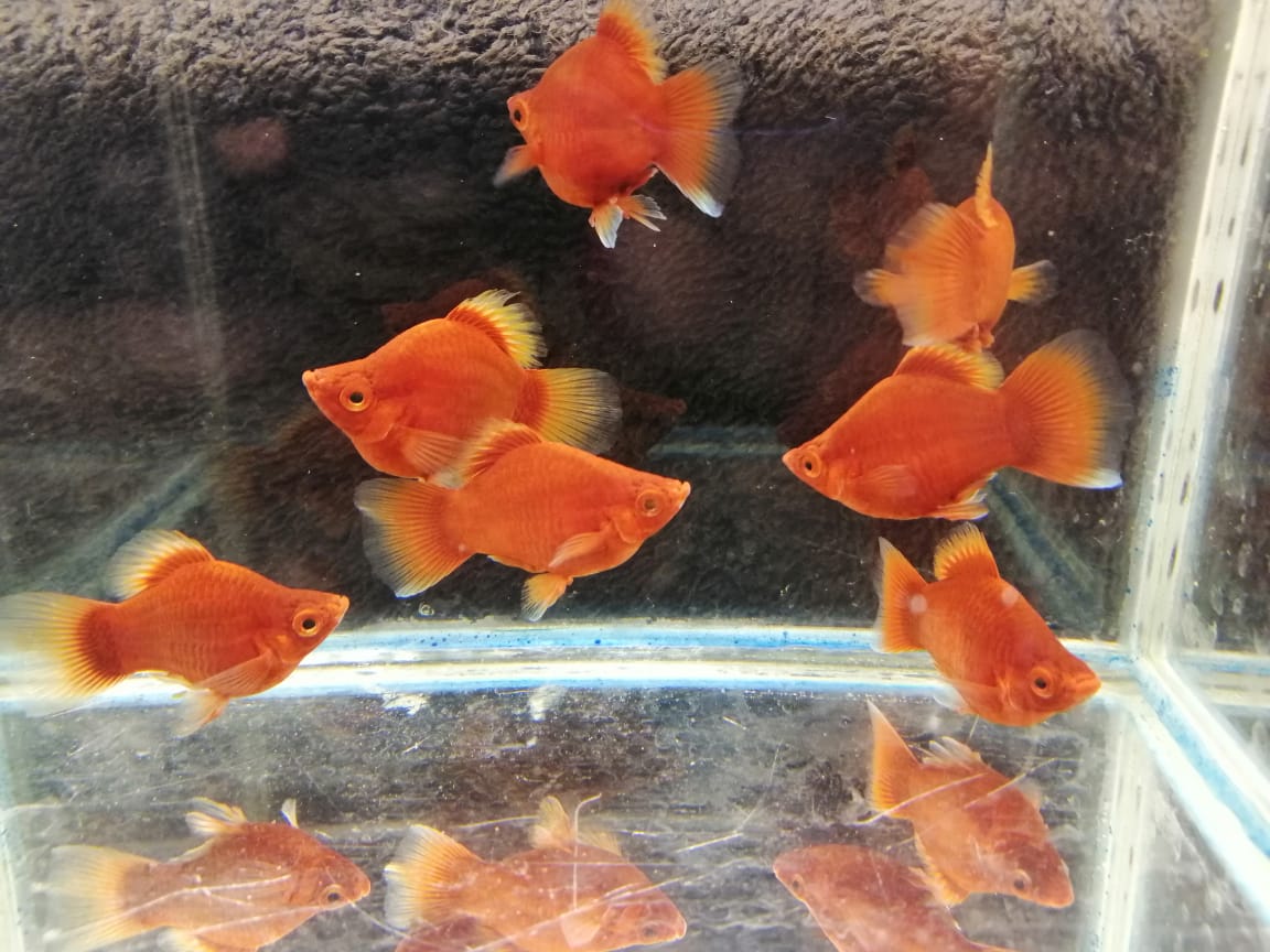 Пецилия макулатус красные, взрослые, около 3,5 см, высокопллавничные, самцы.