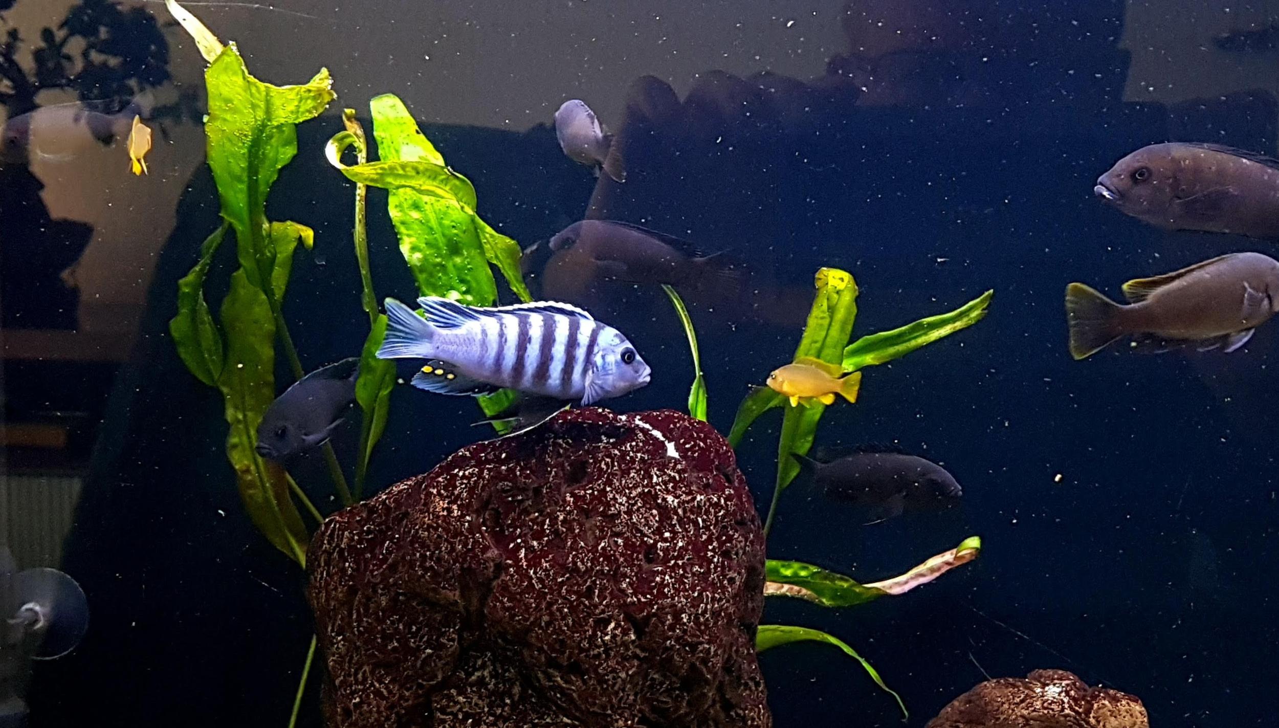 Приехали из-за поребрика еще 6 хвостиков Metriaclima koningsi (membe deep). С прошлогоднего заезда у меня остался самец и самка, хотелось увеличить семейку. Малышня в аквариуме освоилась мгновенно и носится дружной стайкой, только для фотографирования не соизволили собраться все вместе