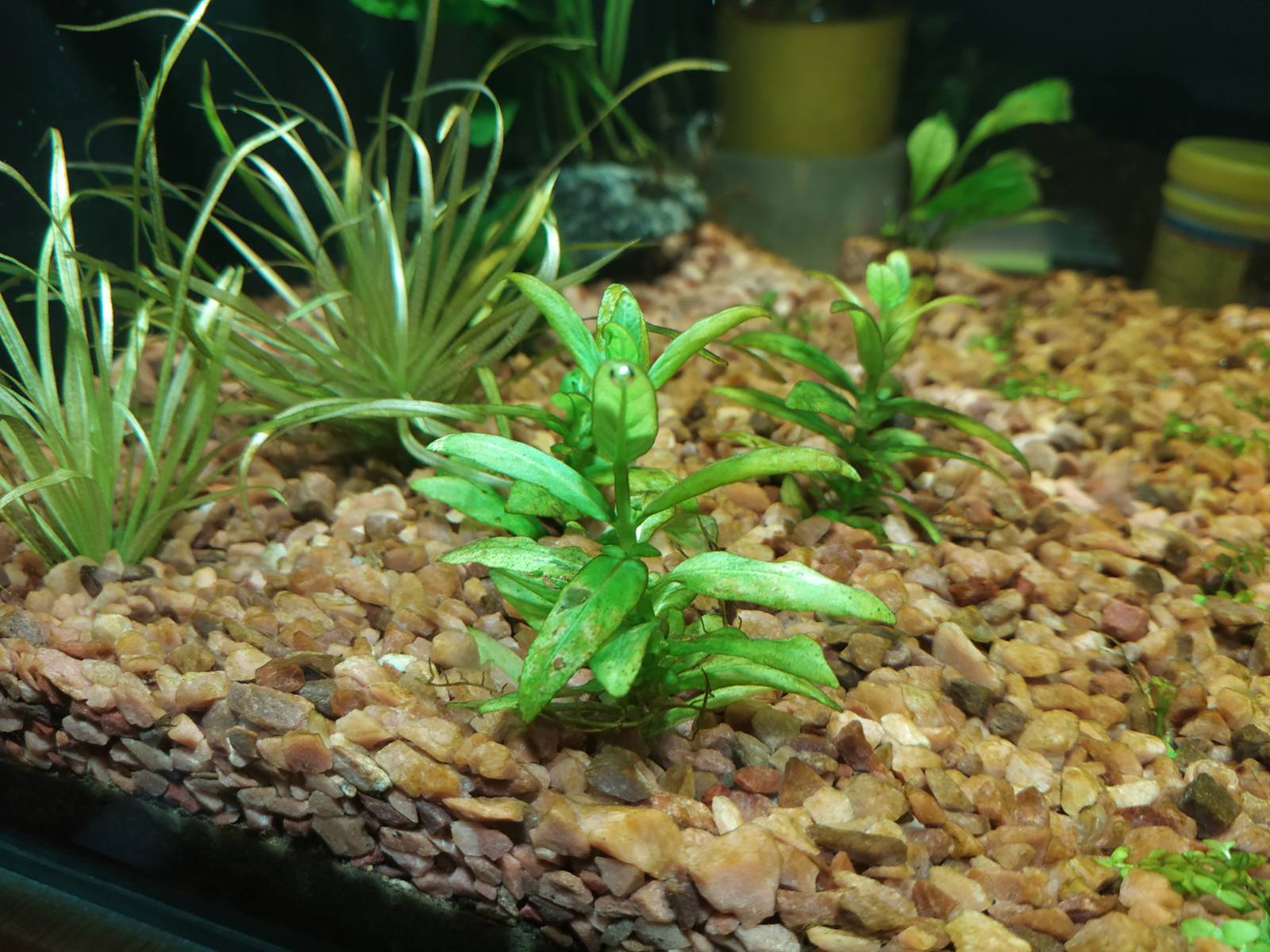 Все здрасти. Сейчас аквариум переживает как я понял нашествие "бурых" водорослей.Грунт и растения стоят все рыжие и видно что начинают подгнивать. Корягу пока убрал из аквариума и подменил 30% воды. Стало получше + растения начали активно пузырять. Будем наблюдать дальше.