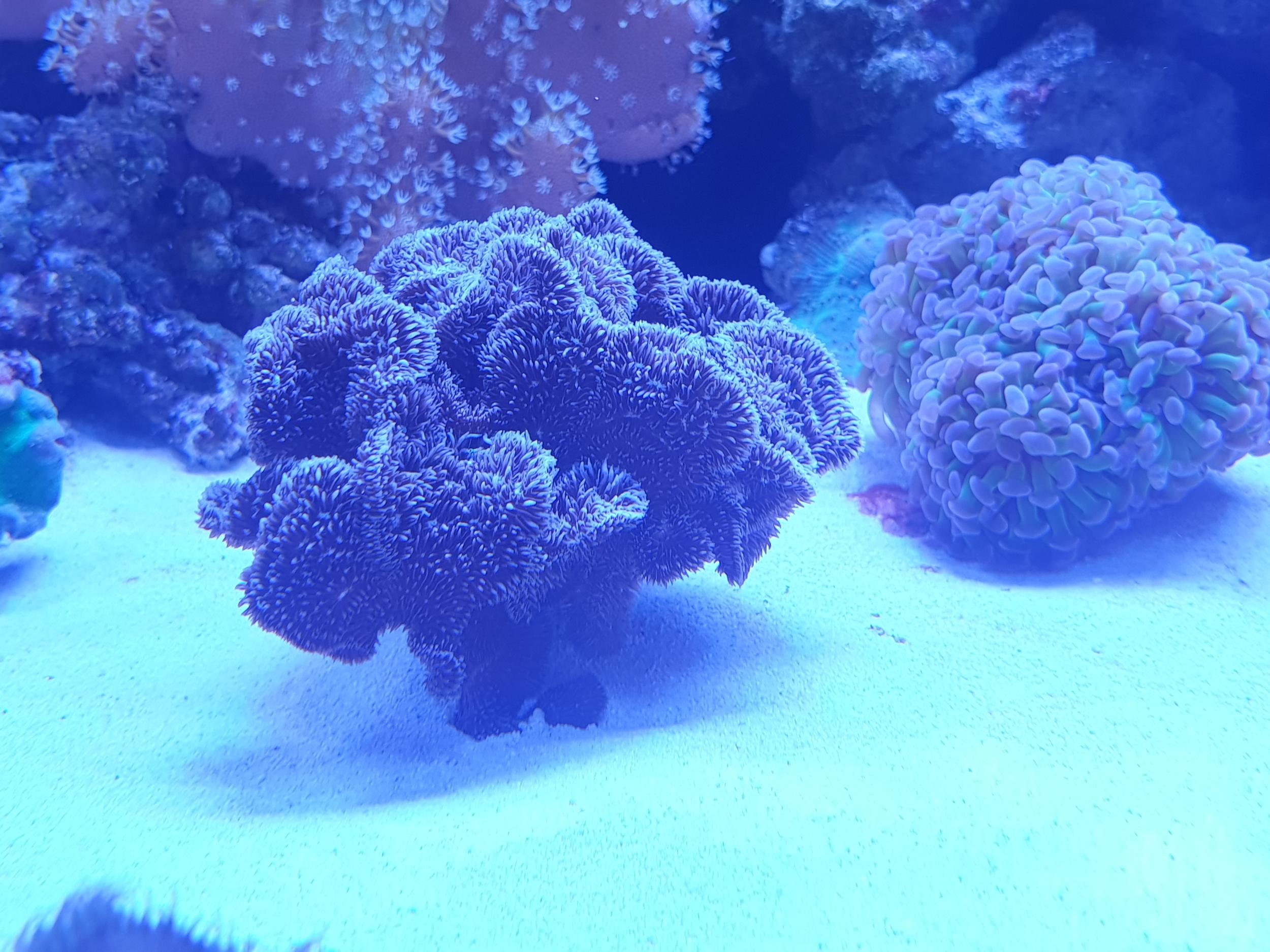 песок около 3см, с нем живут 6 улиток и 8 звезд пещанок, с чистотой справляються