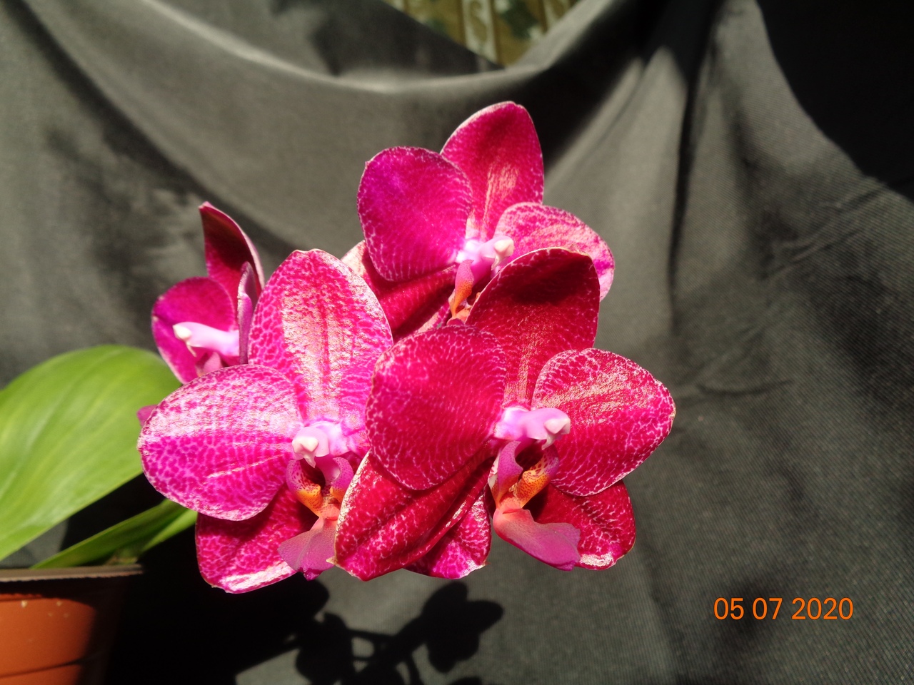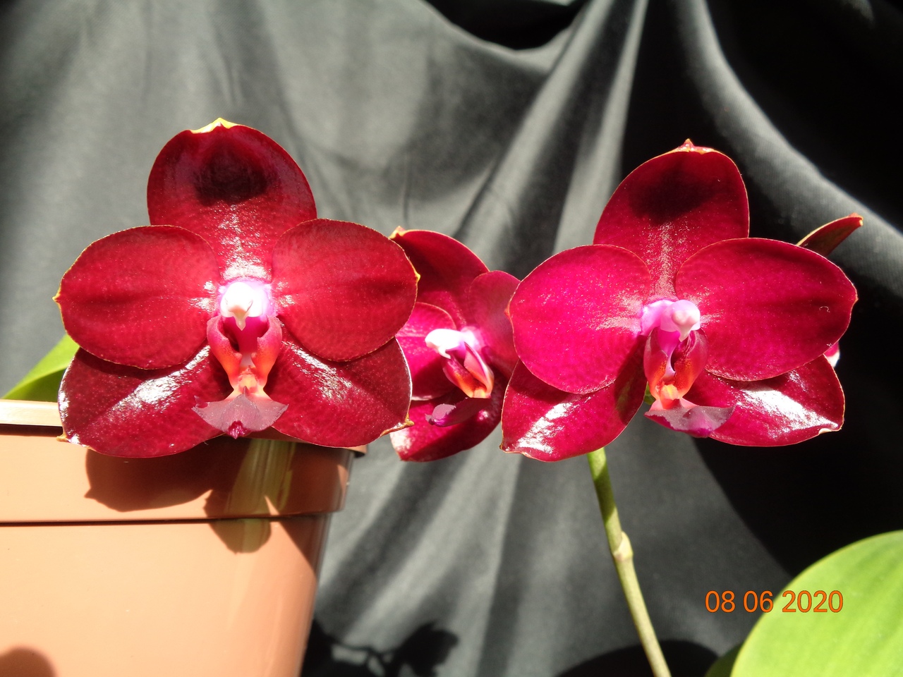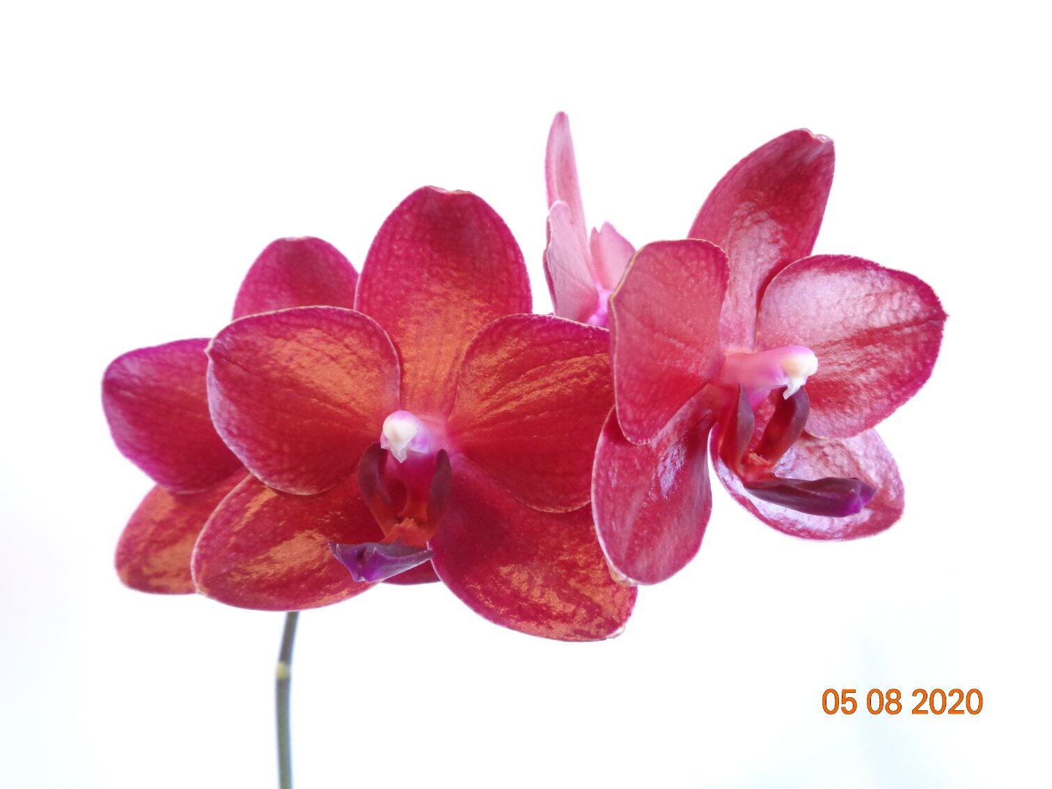 Первое цветение моего подростка Phal. Allura Ruby Diamond купленного в прошлом году в горшке 1,7. Сейчас посажен в горшок на 1,5 литра.