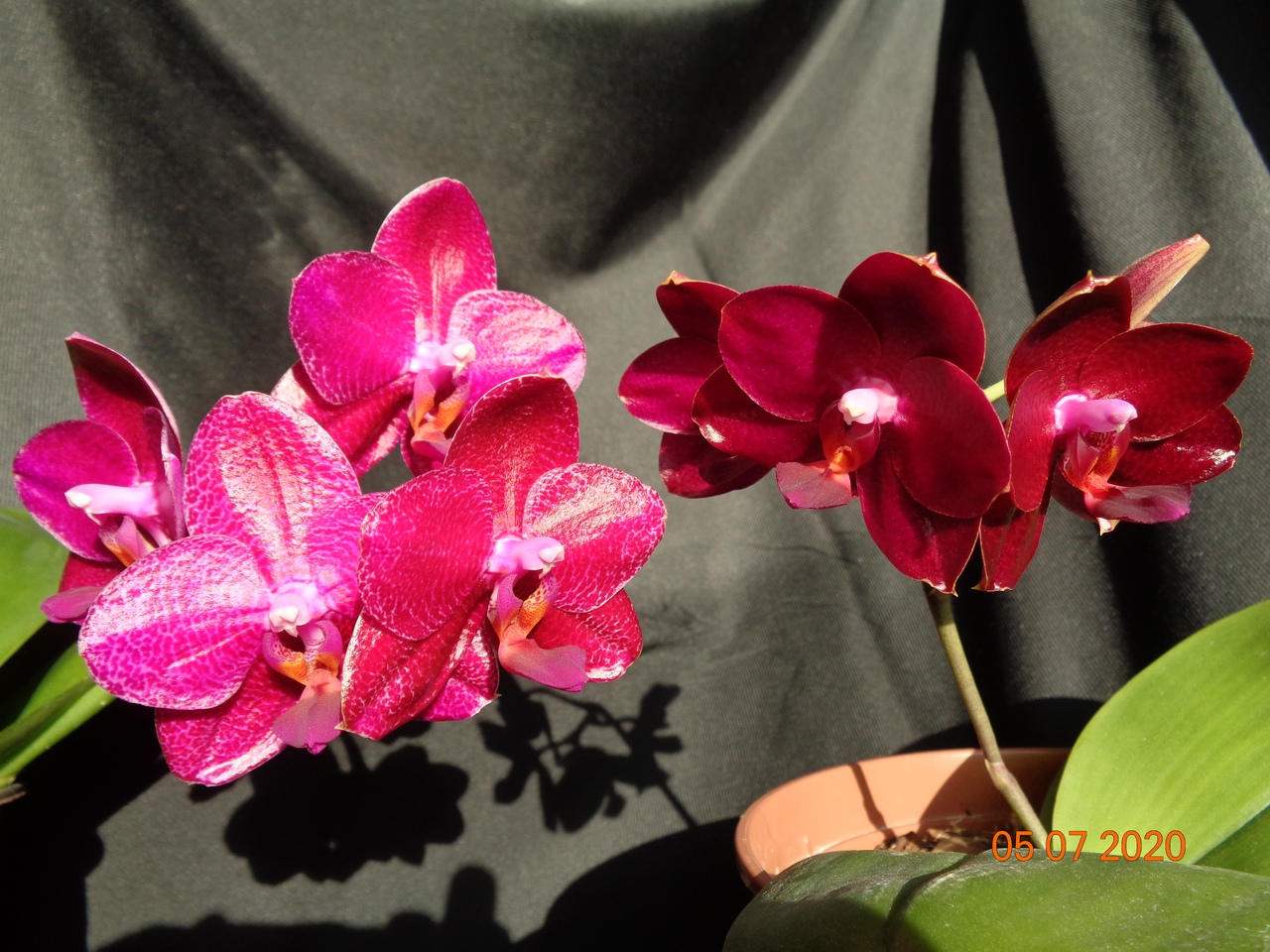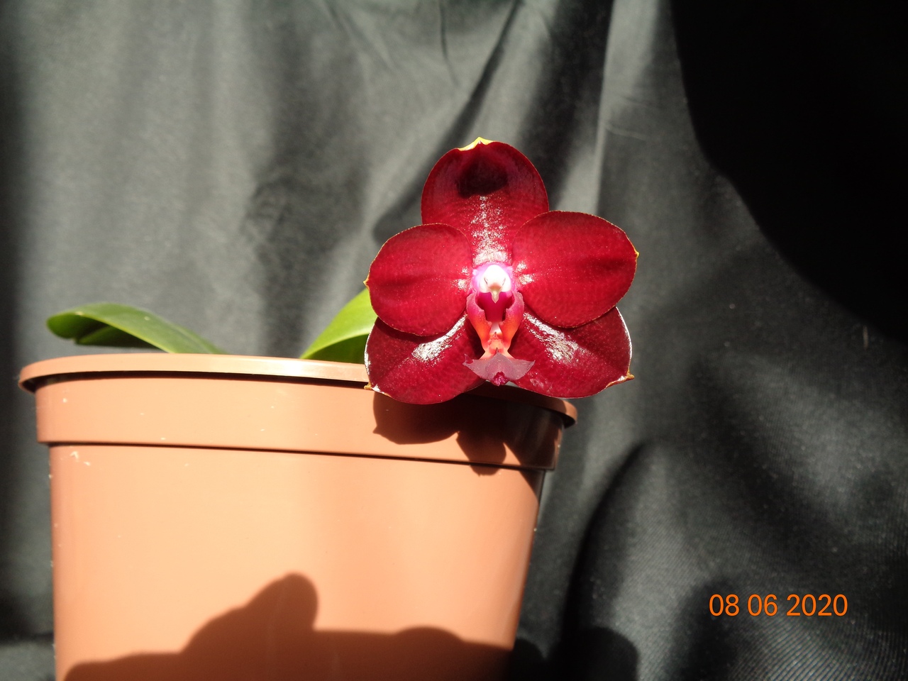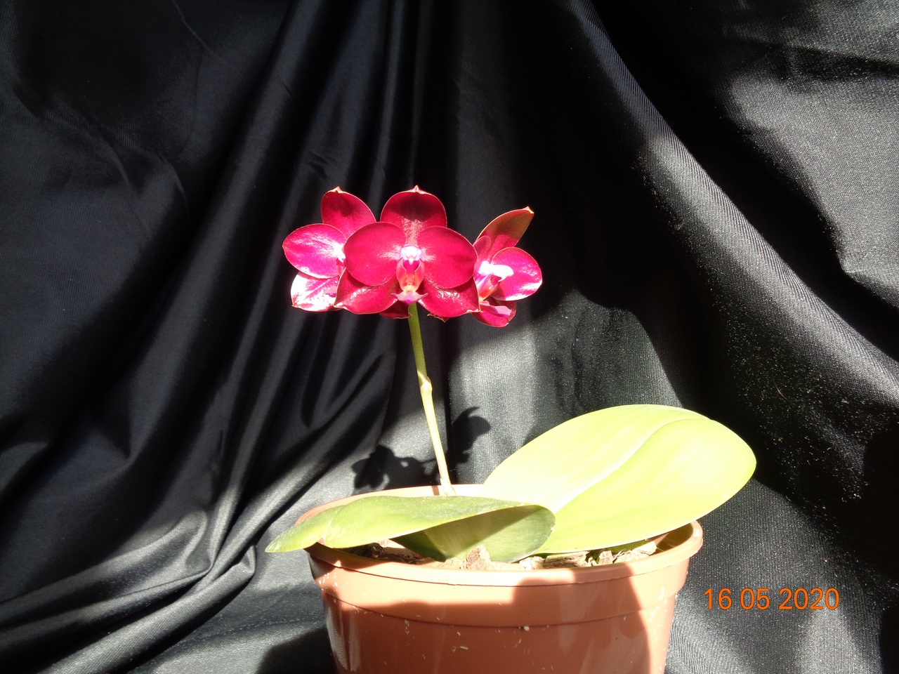 Первое цветение моего подростка Phal. Allura Ruby Diamond купленного в прошлом году в горшке 1,7. Сейчас посажен в горшок на 1,5 литра.