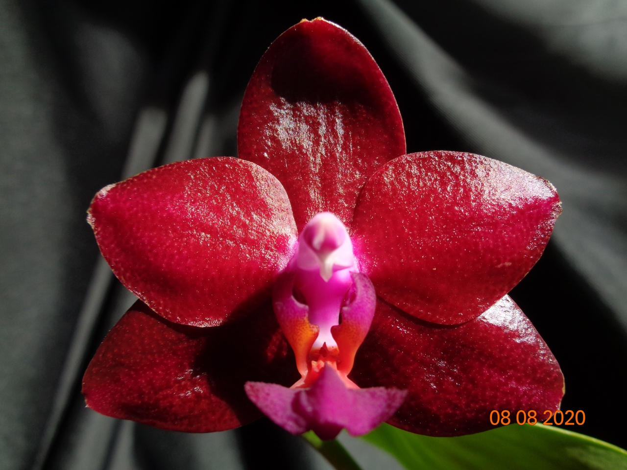 Первое цветение моего подростка MO522 P. Mituo King ''April Blood''. Цветок для глаза однотонный то фотоаппарат видит какой то рисунок....