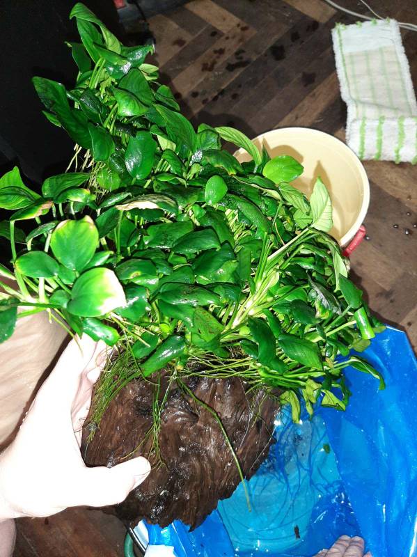 Віддам корягу з великим Анубіасом. Анубіас трохи в бороді.