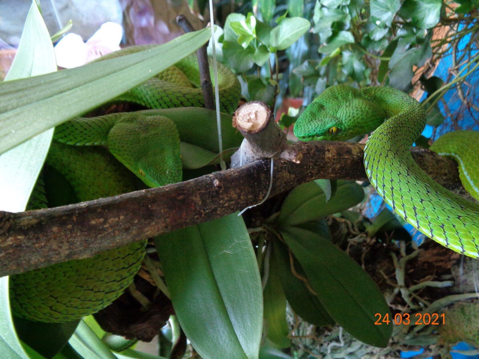 влажность поддерживается за счет опрыскивания дистиллированной водой дважды в день в 12 и 21 час. в 12 часов опрыскиваю и змей вечером только террариум. влажность находится на уровне 75-90%.