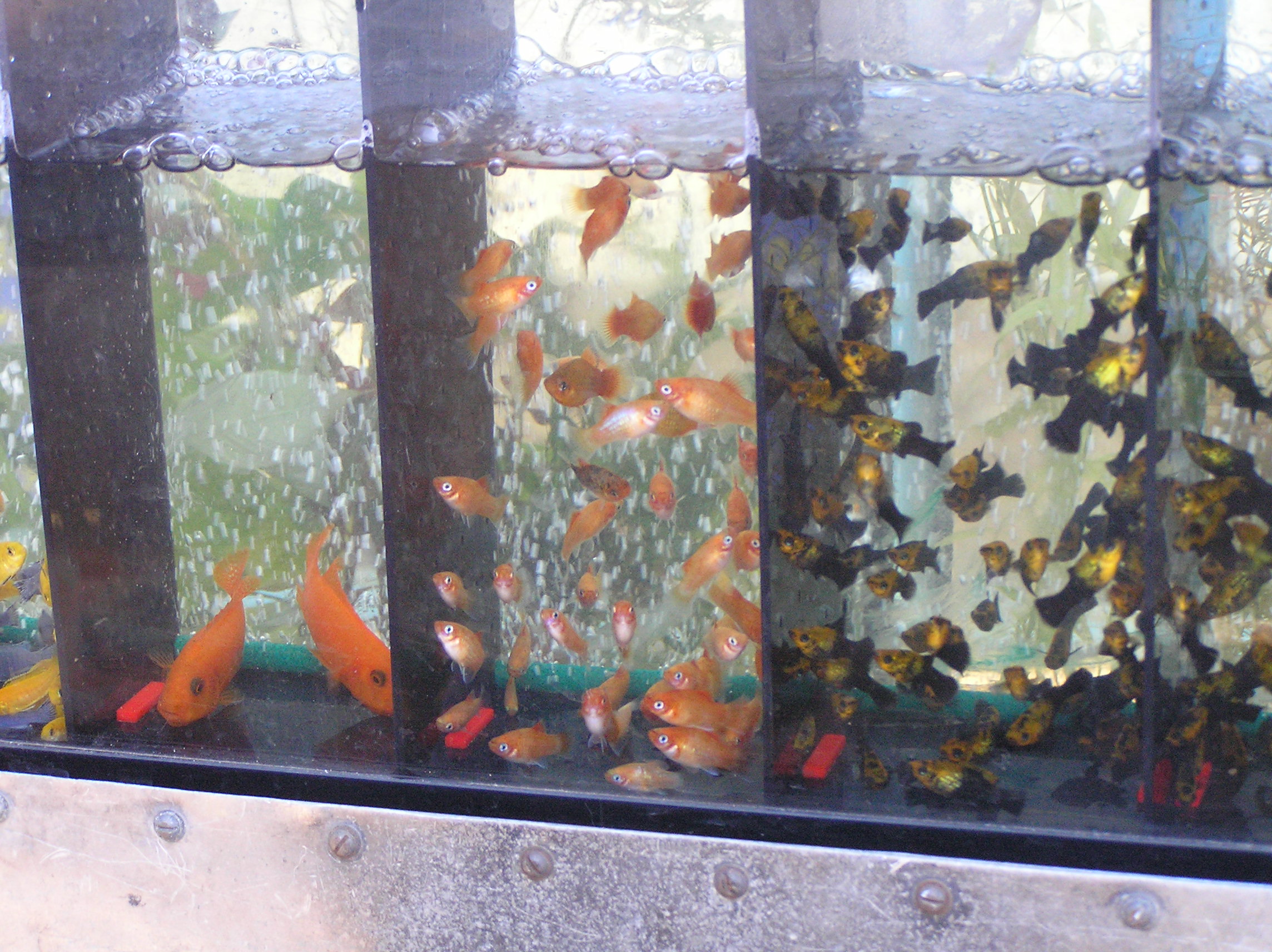 ....Вместе с тем,даже не приглядываясь строго, огромное количество генно модифицированных рыбок.И светятся они очень даже привлекательно для обычного покупателя.Особенно,если он пришел в первый раз.Также видел и некоторое количество оптовиков,деловито совершающих свои покупки.А как вы думаете,каких рыбок в первую очередь возьмет оптовик для своих продаж?Ну да,вы угадали,вернее просто понимаете каких.Но об этом промолчу пока.