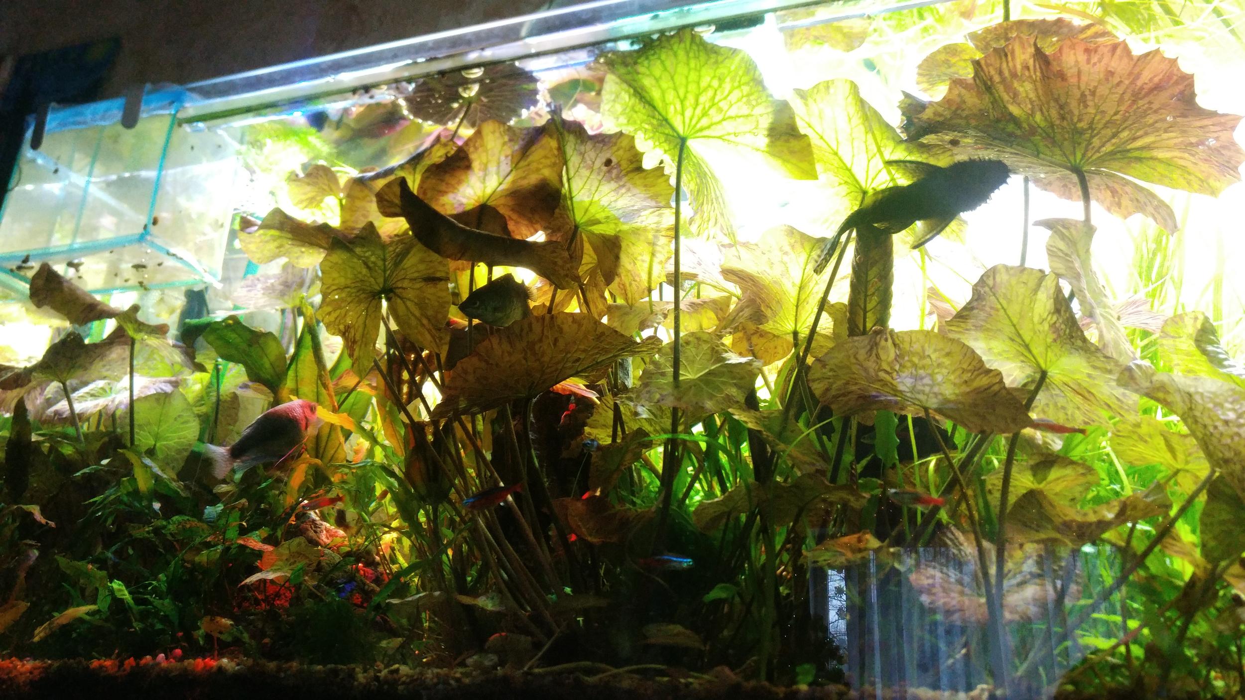 Есть желание избавиться от нескольких маточных кустов нимфеи. Затеняют свет в аквариуме. Остался один куст.
