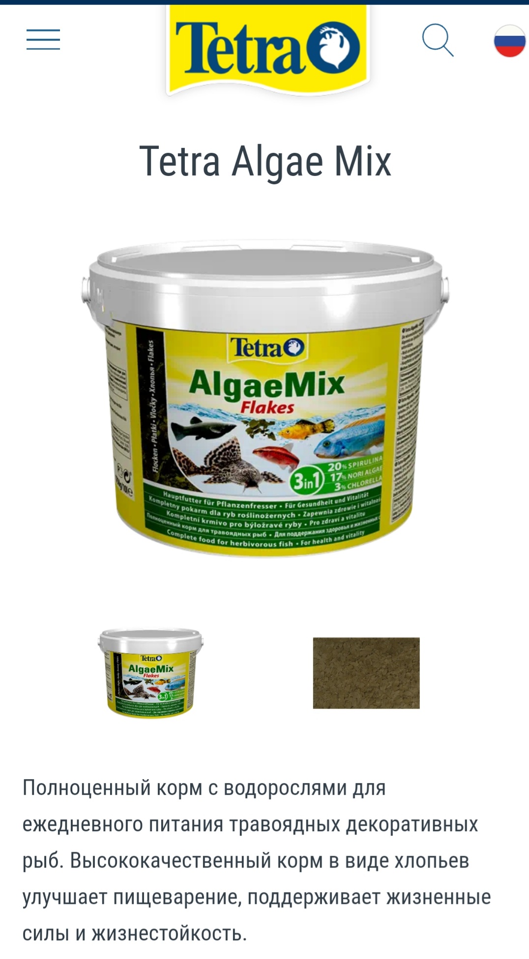 Корм Tetra с максимальным содержанием спирулины 20%.